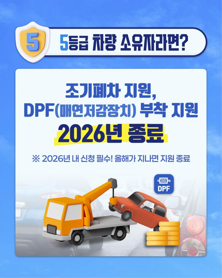 5등급 자동차 조기폐차, DPF부착 지원사업, 2026년 종료