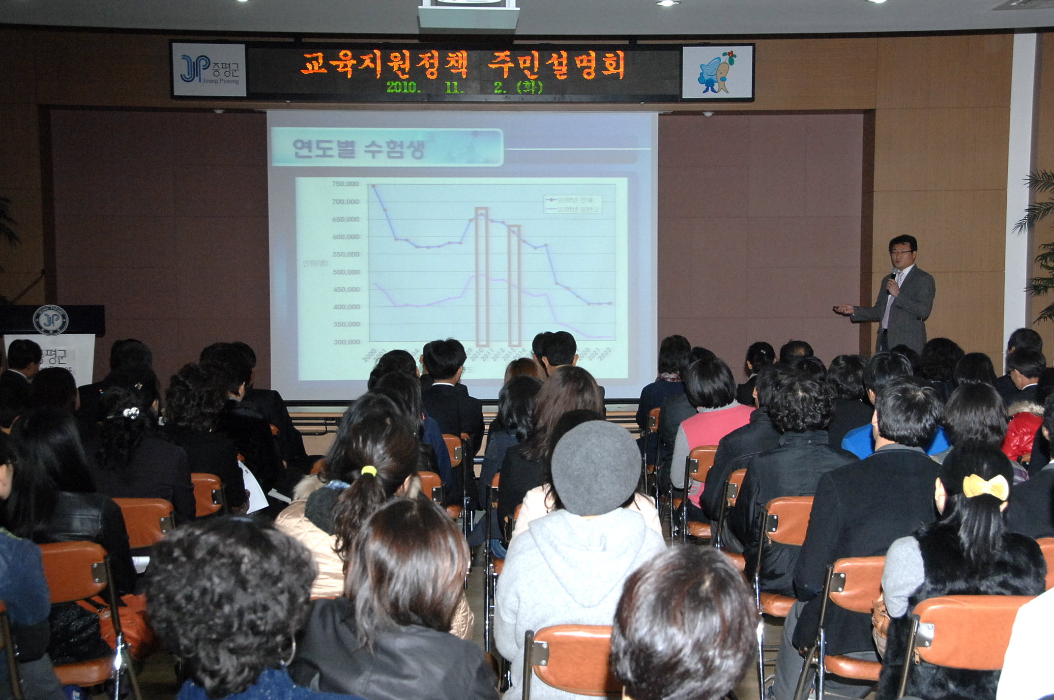증평군과 재단법인 증평군민장학회가 추진하는 2011년도 교육지원정책 주민설명회가 2일 오후 2시 증평군청 대회의실에서 학부모 및 학생, 학교관계자 등 200여명이 참여한 가운데 열렸다.[보도자료실 참조]