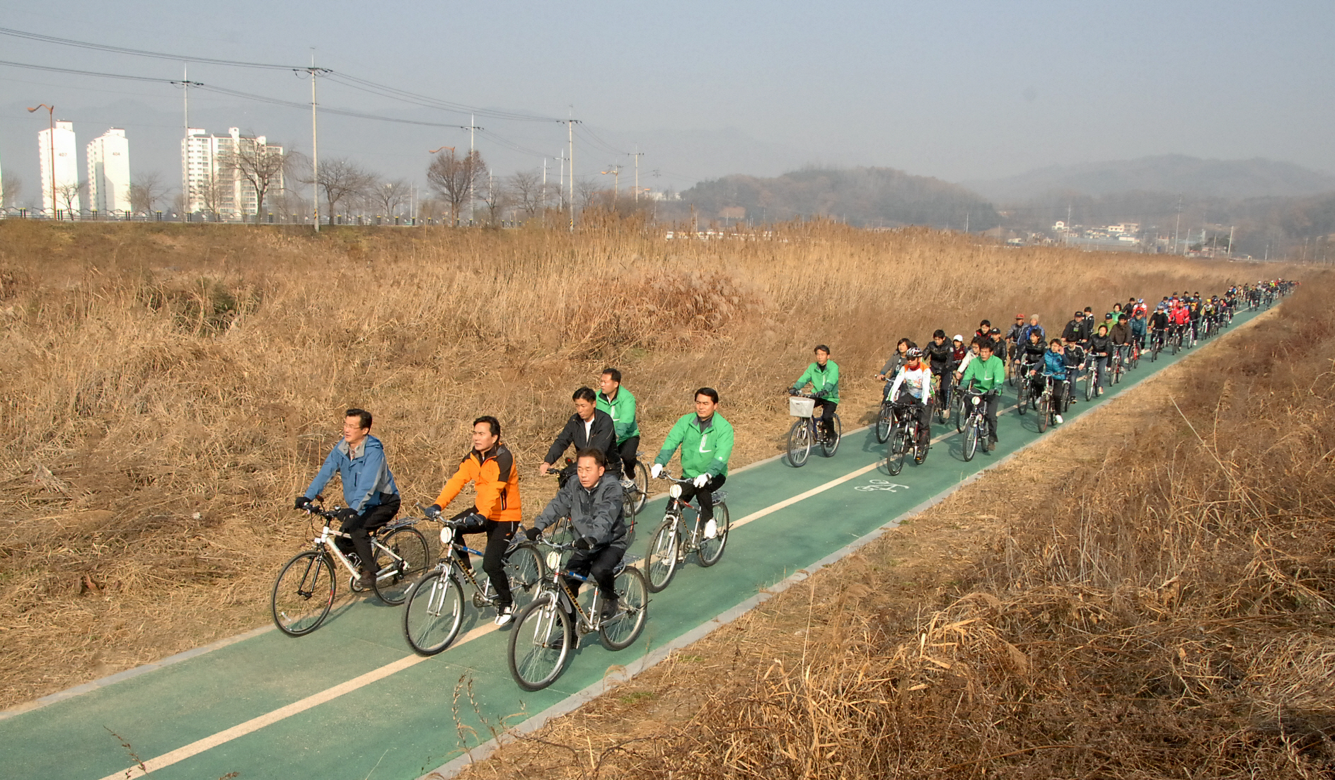 전국 10대 자전거 거점도시로 선정된 증평군 보강천체육공원에서는 21일 오전 10시 300여명의 군민들이 참여한 가운데 ‘증평군 자전거타기 대행진’ 행사가 열렸다. [보도자료실 참조]