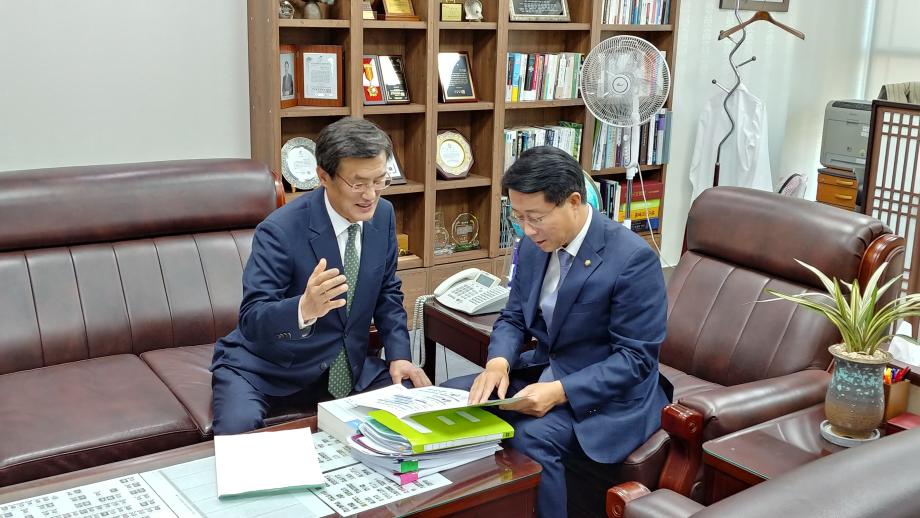 홍성열 증평군수가 지난 12일 국회를 찾아 지역국회의원 경대수(자유한국당, 충북 증평·진천·음성) 의원실과 예산결산특별위원회 조정식(더불어민주당, 경기 시흥시 을) 의원실을 차례로 방문했다.