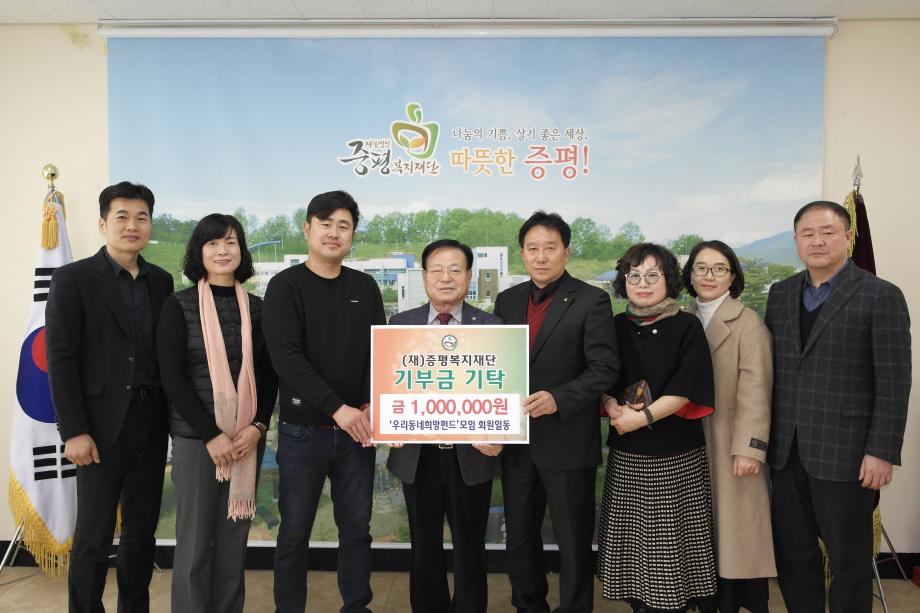 우리동네희망펀드 회원 일동, (재)증평복지재단에 100만원 기탁
