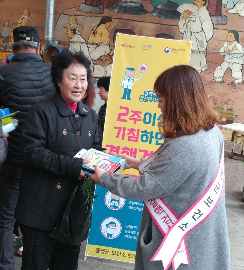 증평군보건소는‘제9회 결핵예방의 날(3.24)’을 맞아 지난 21일 증평읍 장뜰시장 일원에서 결핵예방 캠페인을 실시했다.