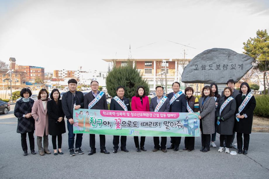 증평군이 22일 증평읍 증평리 증평초등학교 정문에서 유관기관과 학교폭력·성폭력예방 등굣길 합동캠페인을 실시했다.