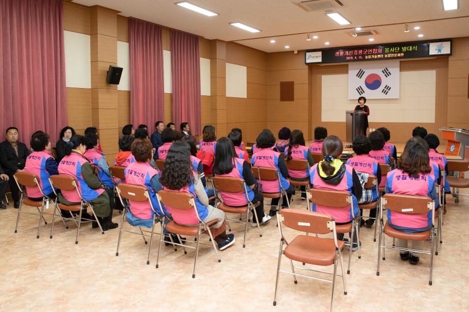 (사)한국생활개선증평군연합회(회장 하정숙)은 15일 농업기술센터 농업인문화관 대강당에서 이웃 나눔과 재능기부 등을 위한 생활개선회 봉사단 발대식과 사랑의 쌀 나누기 행사를 열었다.