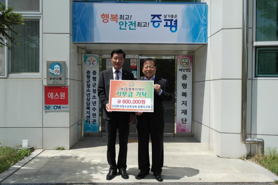 (사)한국청소년육성회 증평지구회(회장 엄대섭)가 2일 (재)증평복지재단(이사장 연기봉)에 지정기부금 60만원 을 전달했다.
