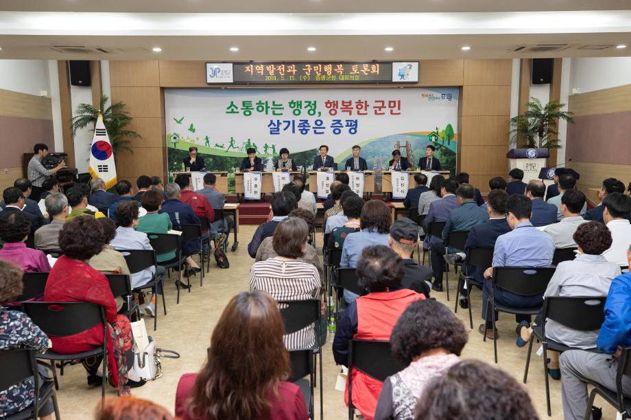 증평군은 15일 군청 대회의실에서 전문가, 주민 등 100여명이 참석한 가운데 ‘지역발전과 군민행복 토론회’를 개최했다.