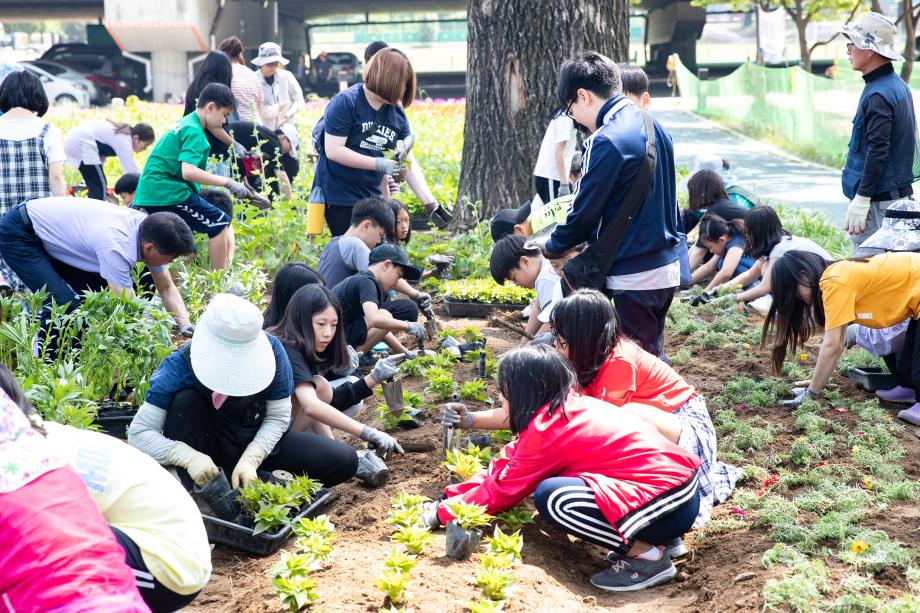 고사리 손으로 직접 심은 우리꽃…증평군, 증평초 학생들과 미루나무숲에 동심꽃밭 조성