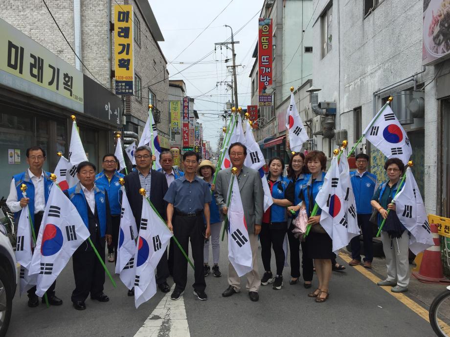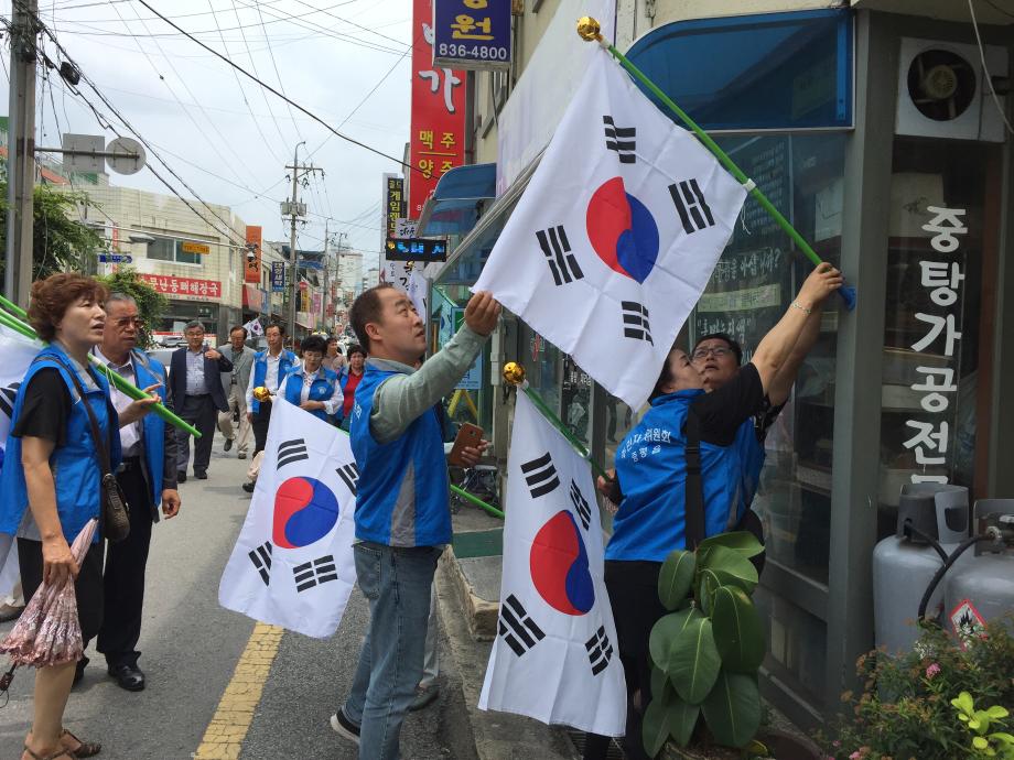 증평읍 주민자치위원회(위원장 연태희)는 17일 제71주년 제헌절을 맞아 장뜰전통시장 태극기달기 행사를 펼쳤다.