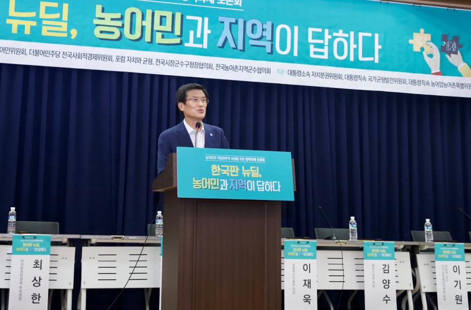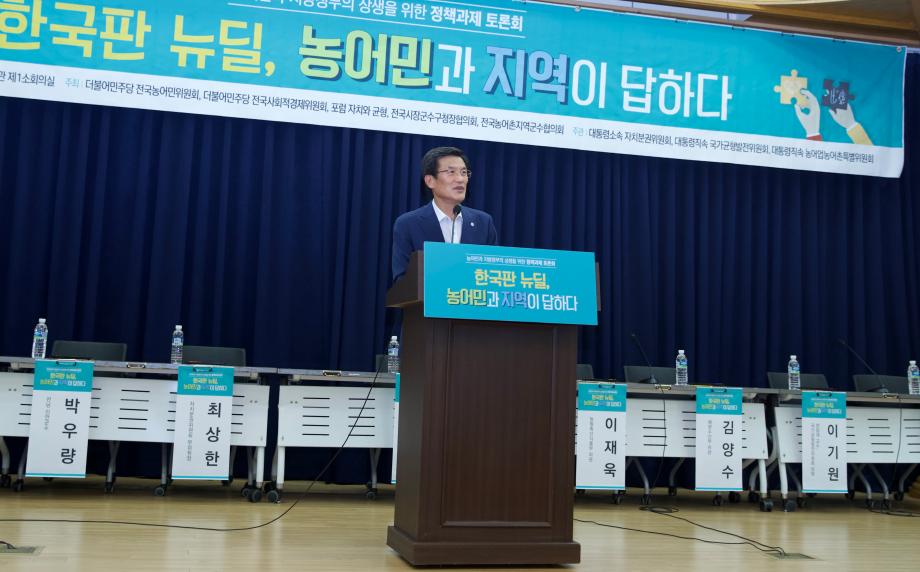 전국농어촌지역군수협의회(회장 홍성열 증평군수), 전국농어민위원회(위원장 위성곤 국회의원), 대통령소속 자치분권위원회(위원장 김순은), 국가균형발전위원회(위원장 김사열), 농어업농어촌특별위원회(위원장 정현찬)는 7월 30일 서울 영등포구 국회의사당 국회의원회관 제1소회의실에‘한국판 뉴딜, 농어민과 지역이 답하다’라는 주제로 토론회를 개최했다.