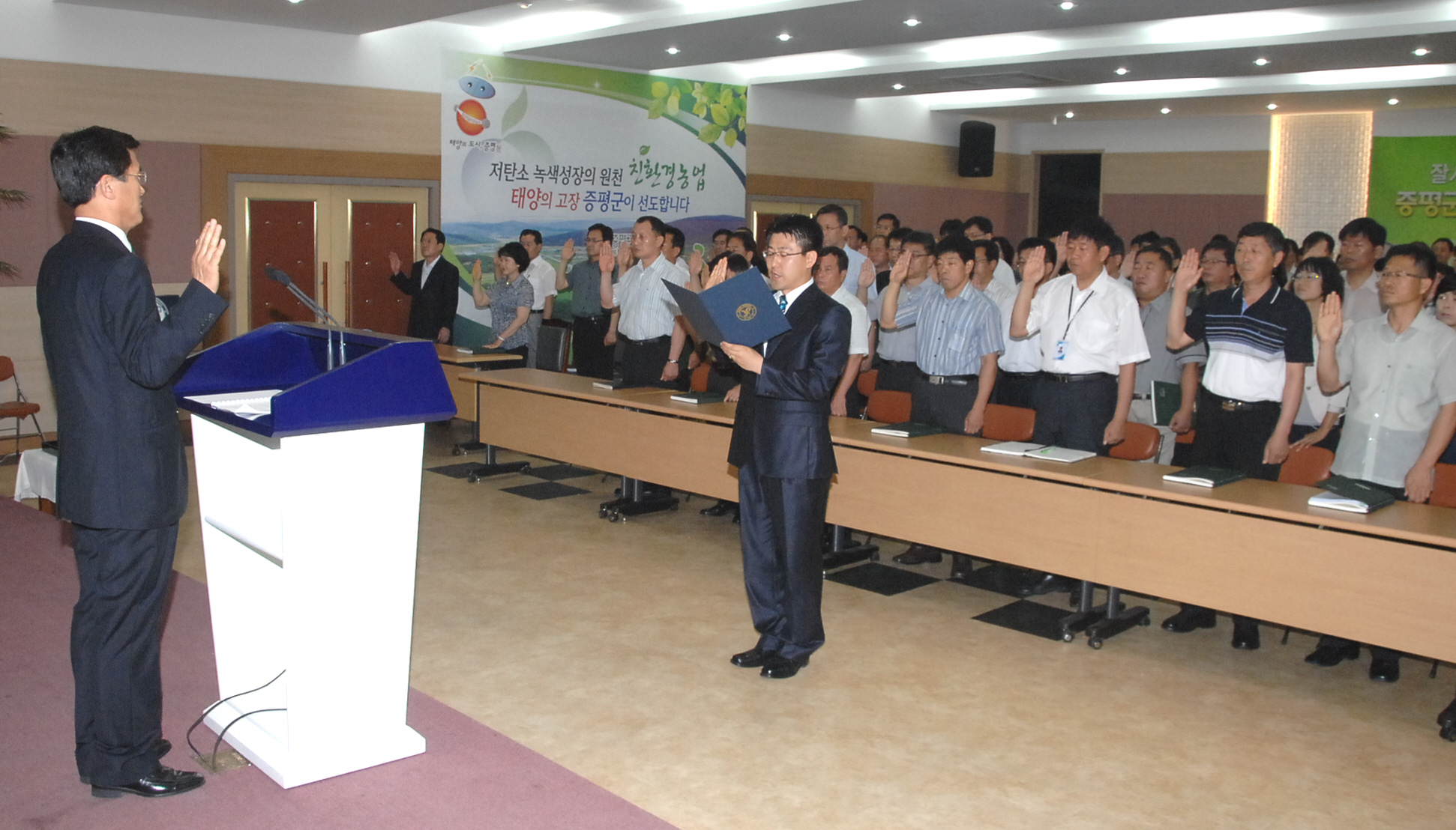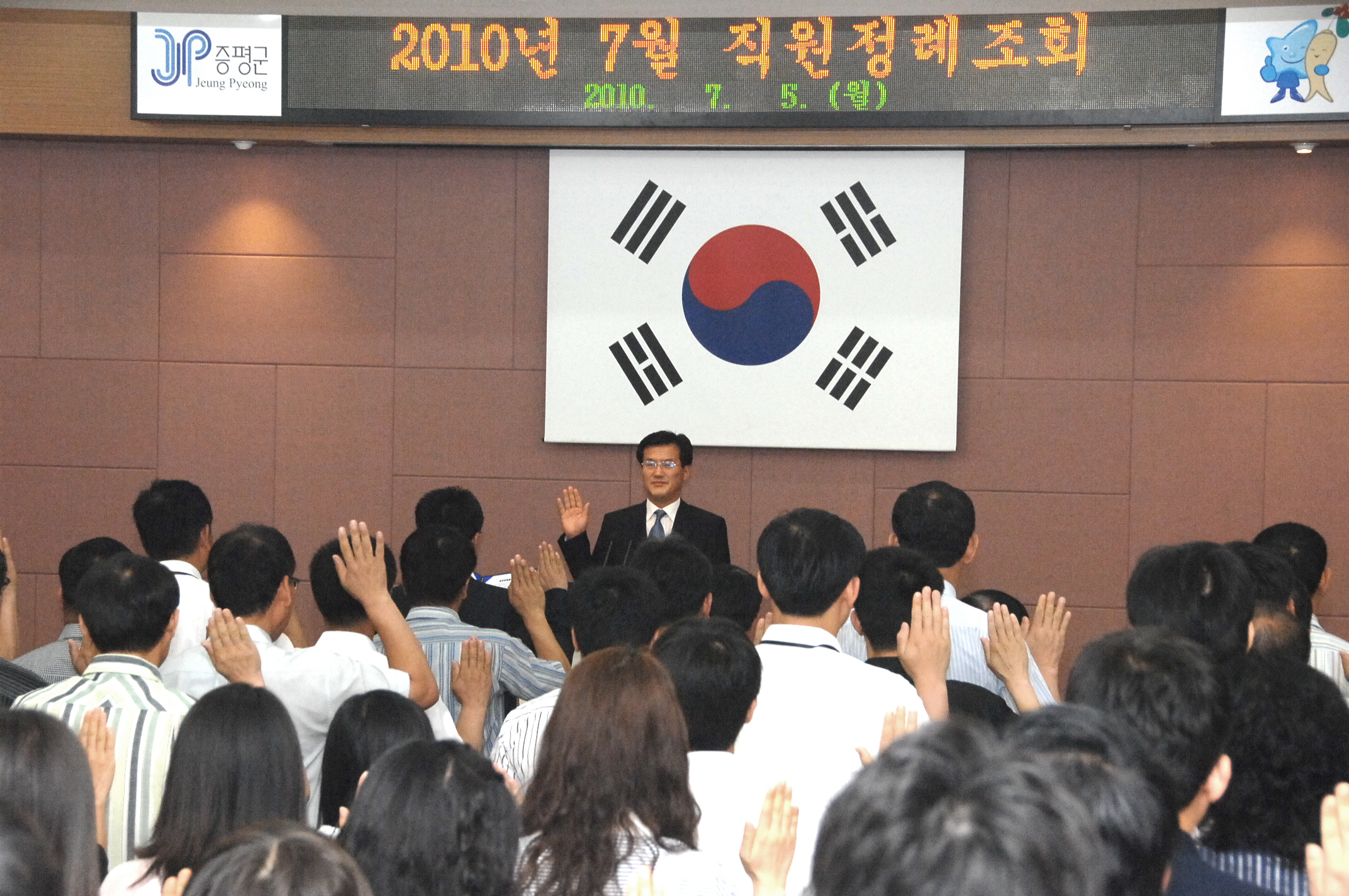 홍성열 증평군수는 5일 오전 8시 30분 군청대회의실에서 열린 첫 직원정례조회에서 군민을 위한 흔들림 없는 군정을 당부했다. [보도자료실 참조]