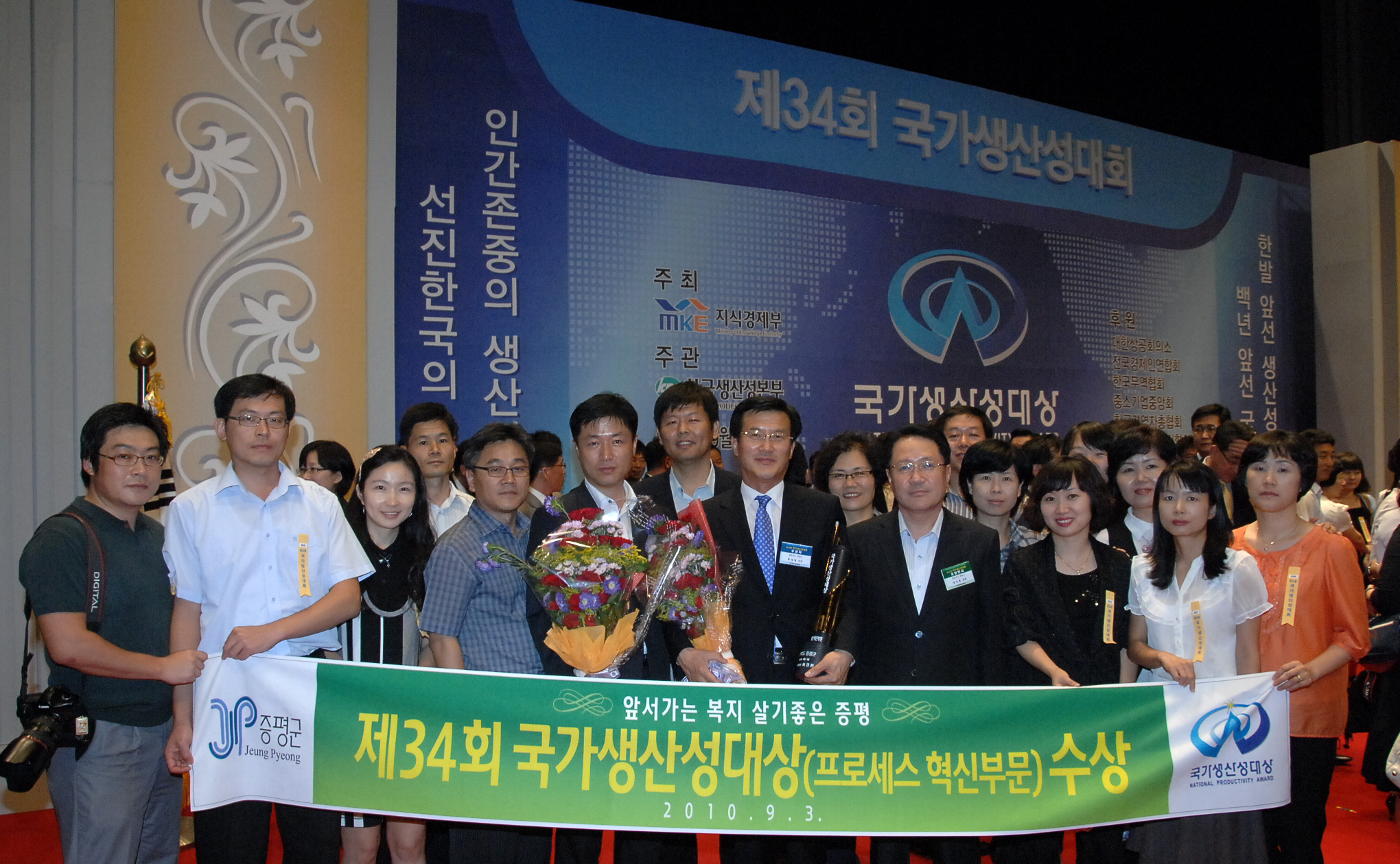 증평군(군수 홍성열)이 3일 서울 코엑스에서 개최한 제34회 국가생산성대회에서 국가생산성대상 프로세스혁신 부문에 선정되어 지식경제부장관 표창을 수상했다.[보도자료실 참조]