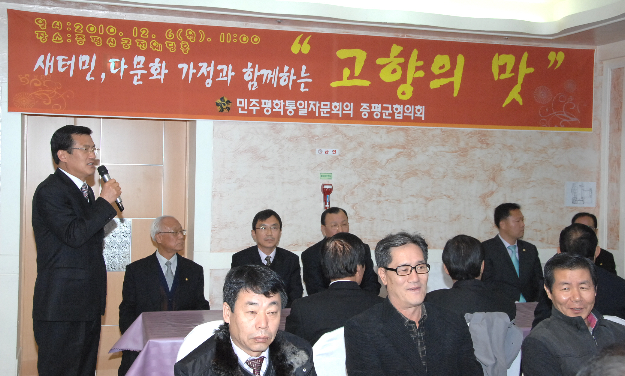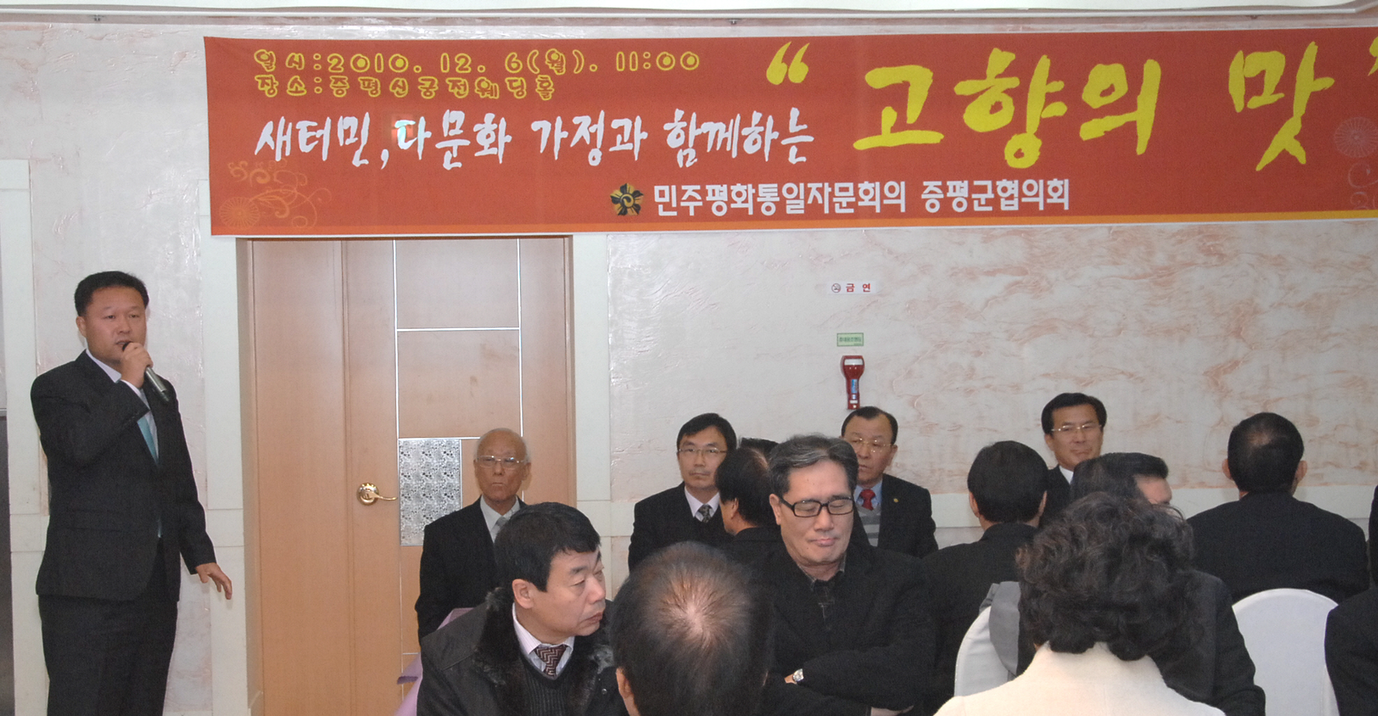 민주평화통일자문위원회 증평군협의회(이하 민주평통 증평군협의회)에서는 6일 증평 신궁전 예식홀에서 지역 내 새터민, 다문화 가정 주민, 실향민 등 100여명이 참여한 가운데 ‘고향의 맛’ 행사를 열었다.[보도자료실 참조]