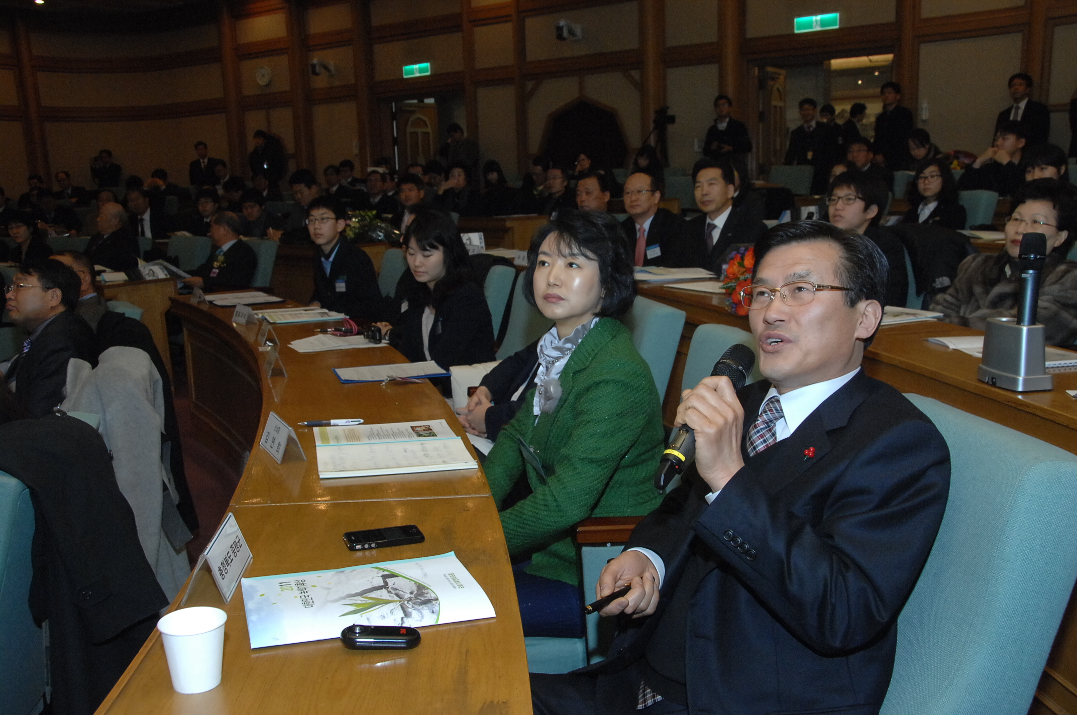 증평군이 9일 국회 의원회관에서 열린 “2011 대한민국 녹색기후상” 시상식에서 자치단체 부문 우수상을 수상했다. 사진은 안경률 국회행정안전위원장(사진오른쪽)이 홍성열 증평군수에게 상장을 수여하는 모습 [증평포커스 참조]