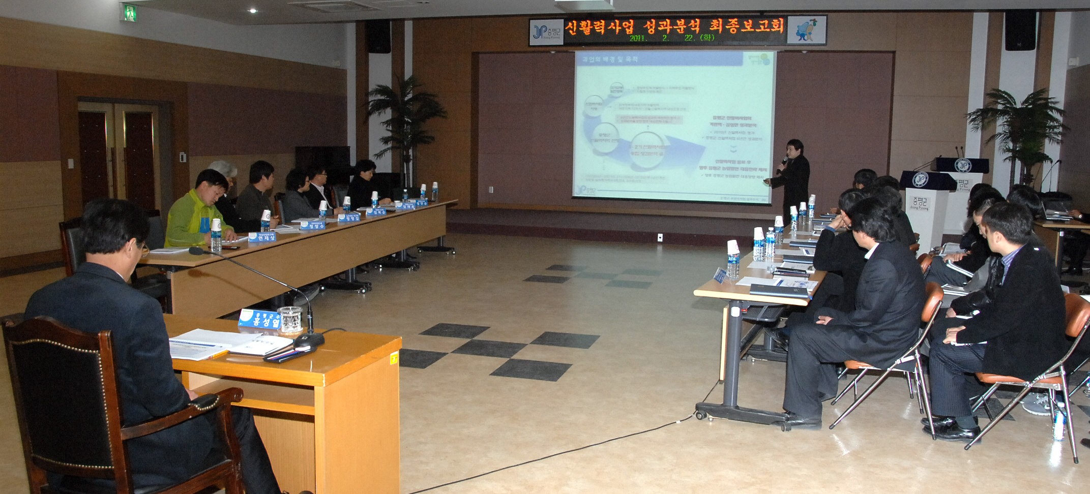 증평군은 22일 오후 3시 군청 대회의실에서 신활력사업 성과분석 용역보고회를 열고 지난 2008년부터 2010년까지 추진해 온 제2기 신활력사업의 성과에 대한 보고와 함께 향후 농림사업에 대한 방향성을 모색하는 시간을 가졌다.[보도자료실 참조]