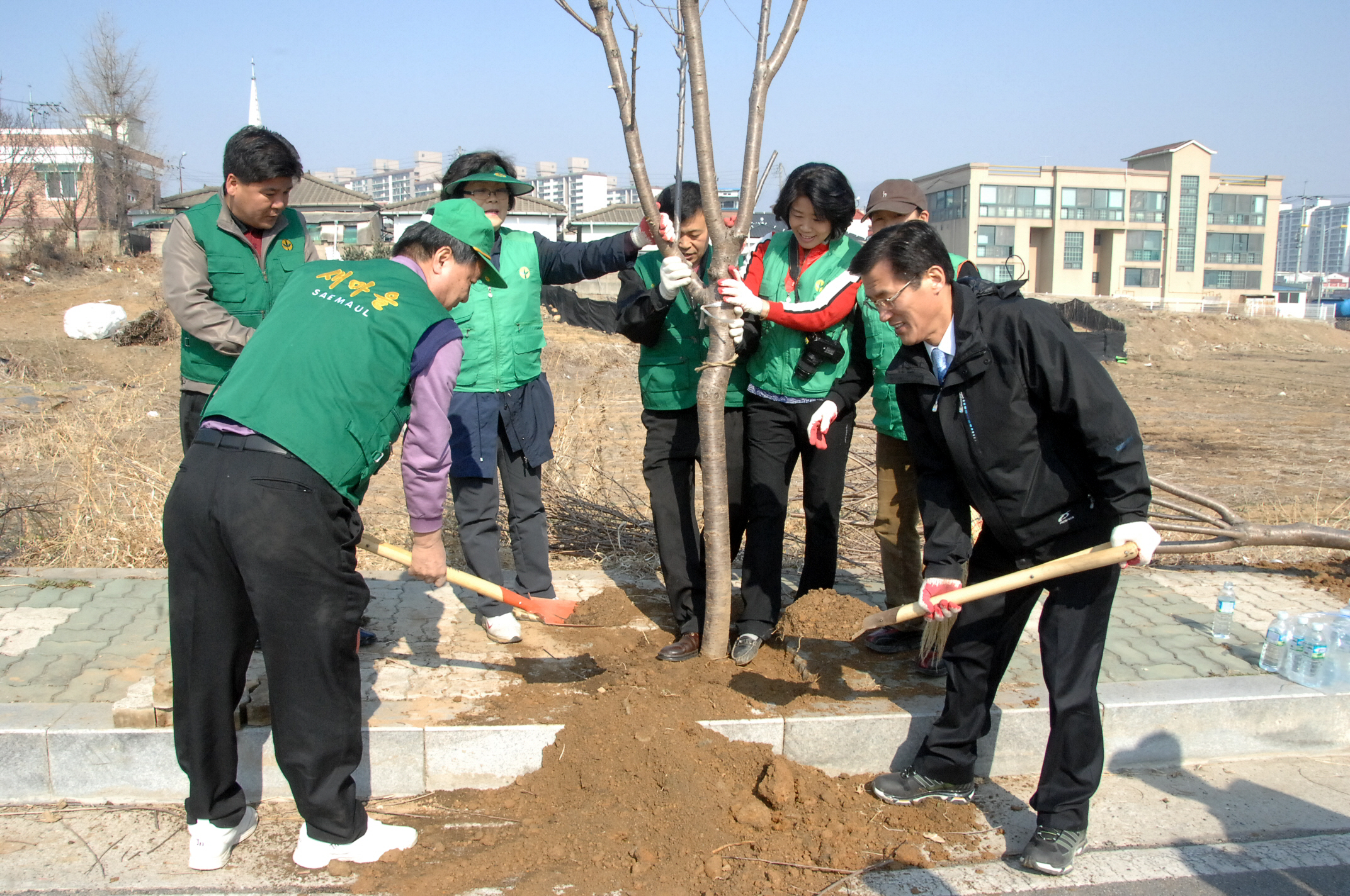 증평군새마을회는 새마을 날 제정을 기념하여 30일 오전10시 증평읍 증천동 두름로에서 홍성열 군수, 박성현 회장을 비롯한 새마을회 남여 지도자 30여명이 참여한 가운데 저탄소 녹색성장과 지구온난화 방지를 위한 ‘100만그루 나무심기’ 캠페인을 갖고 삼일무지개 아파트에서 증평공고앞 도로변 양쪽에 10년생 벚나무 40그루를 식재했다. [보도자료실 참조]