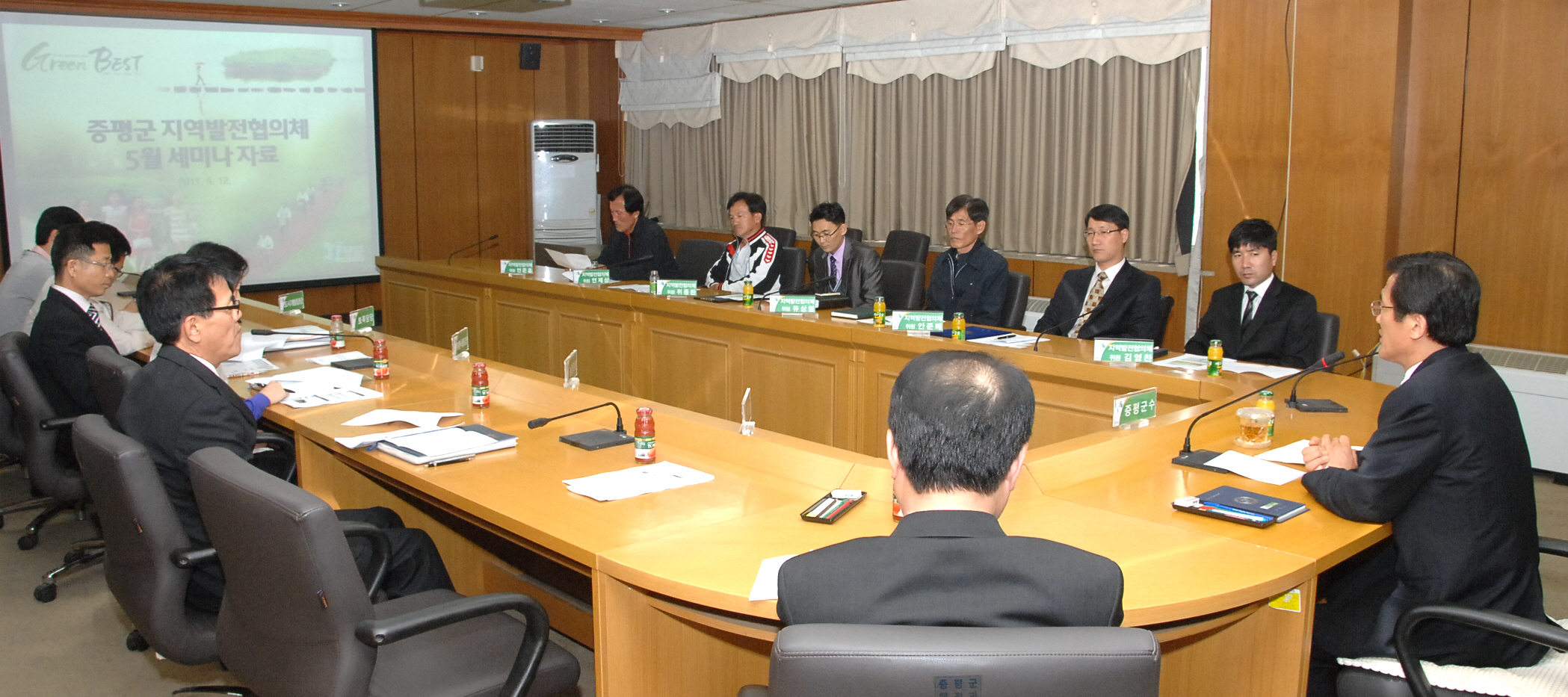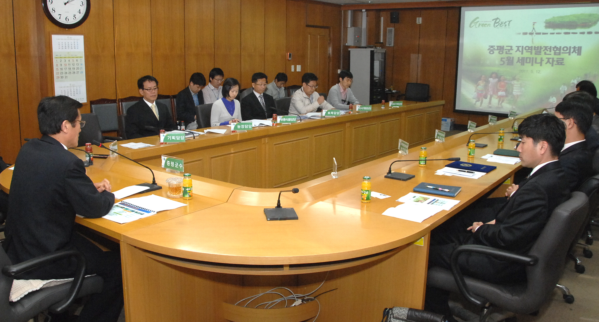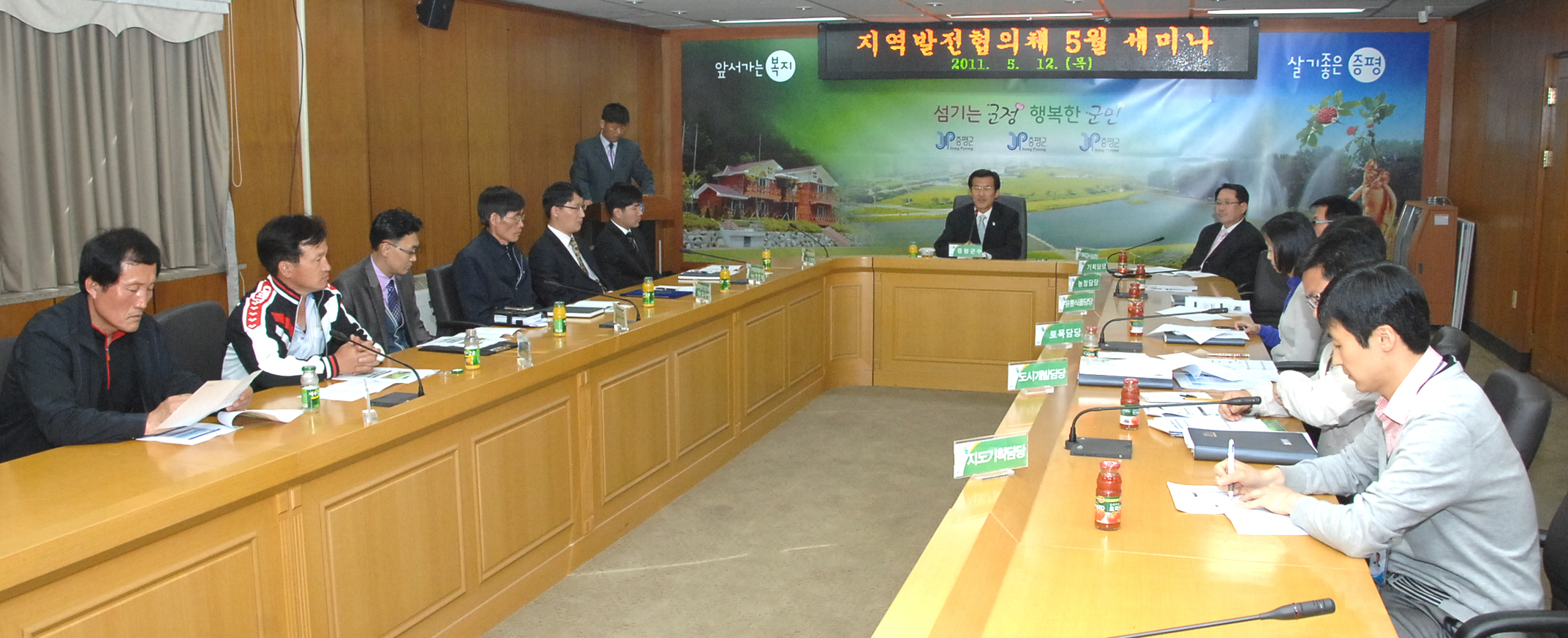증평군 포괄보조사업 지역발전협의체(단장 홍성열)는 12일 오후 2시 군청 소회의실에서 협의체 위원과 포괄보조사업 TF팀 공무원 20여명이 참석한 가운데 5월 세미나를 개최했다.[보도자료실 참조]