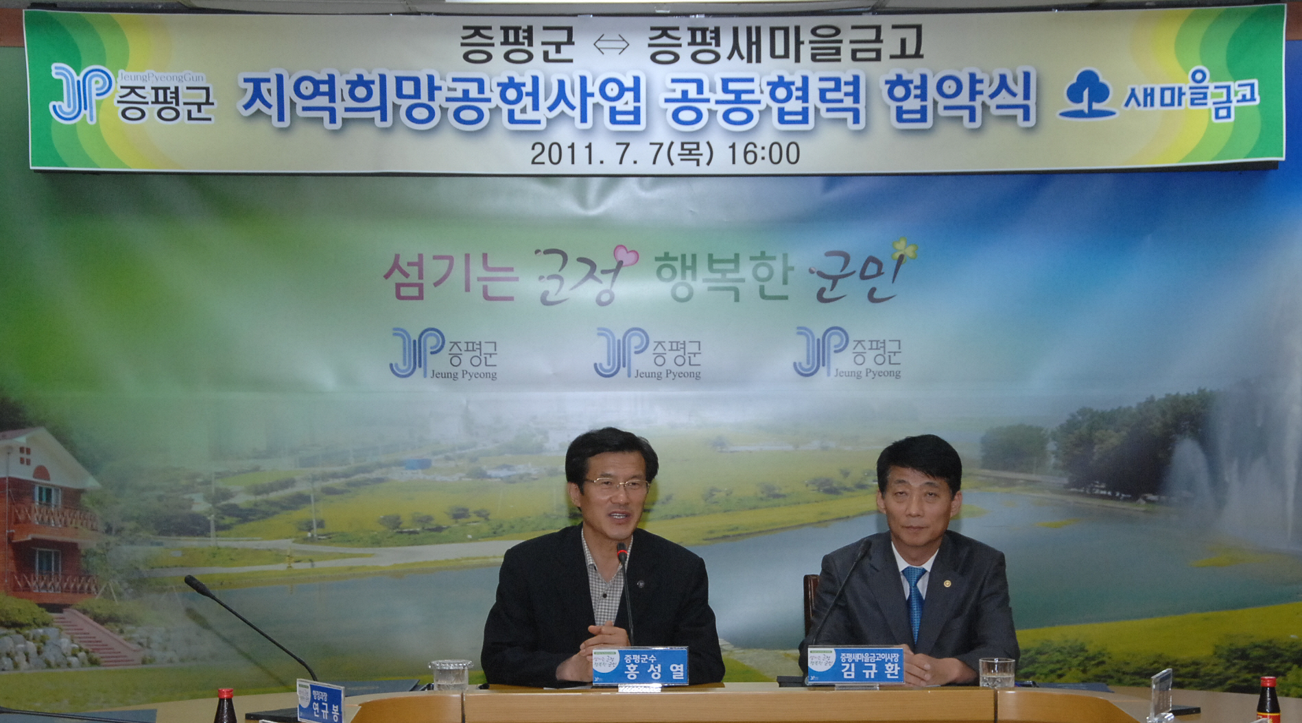증평군(군수.홍성열)과 증평새마을금고(이사장.김규환)은 7일 오후 4시 군청 소회의실에서 지역희망공헌사업 추진을 위한 공동협약을 체결했다.[보도자료실 참조]