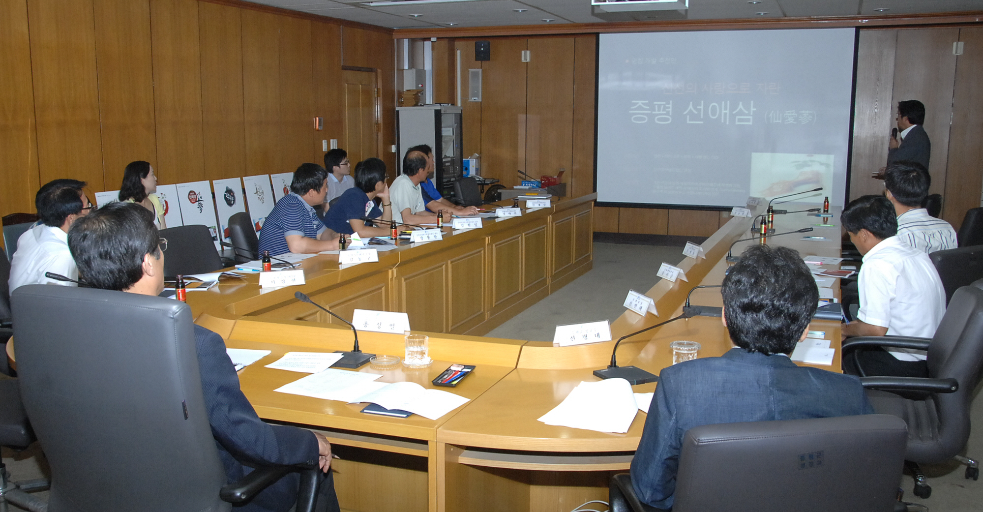 증평군은 22일 오후 2시 군청 소회의실에서 홍성열 증평군수, 장봉현 증평인삼연구회영농법인 대표를 비롯한 관계공무원 등 14명이 참석한 가운데 증평인삼 BI 및 포장재 개발사업 중간보고회를 열었다.[보도자료실 참조]