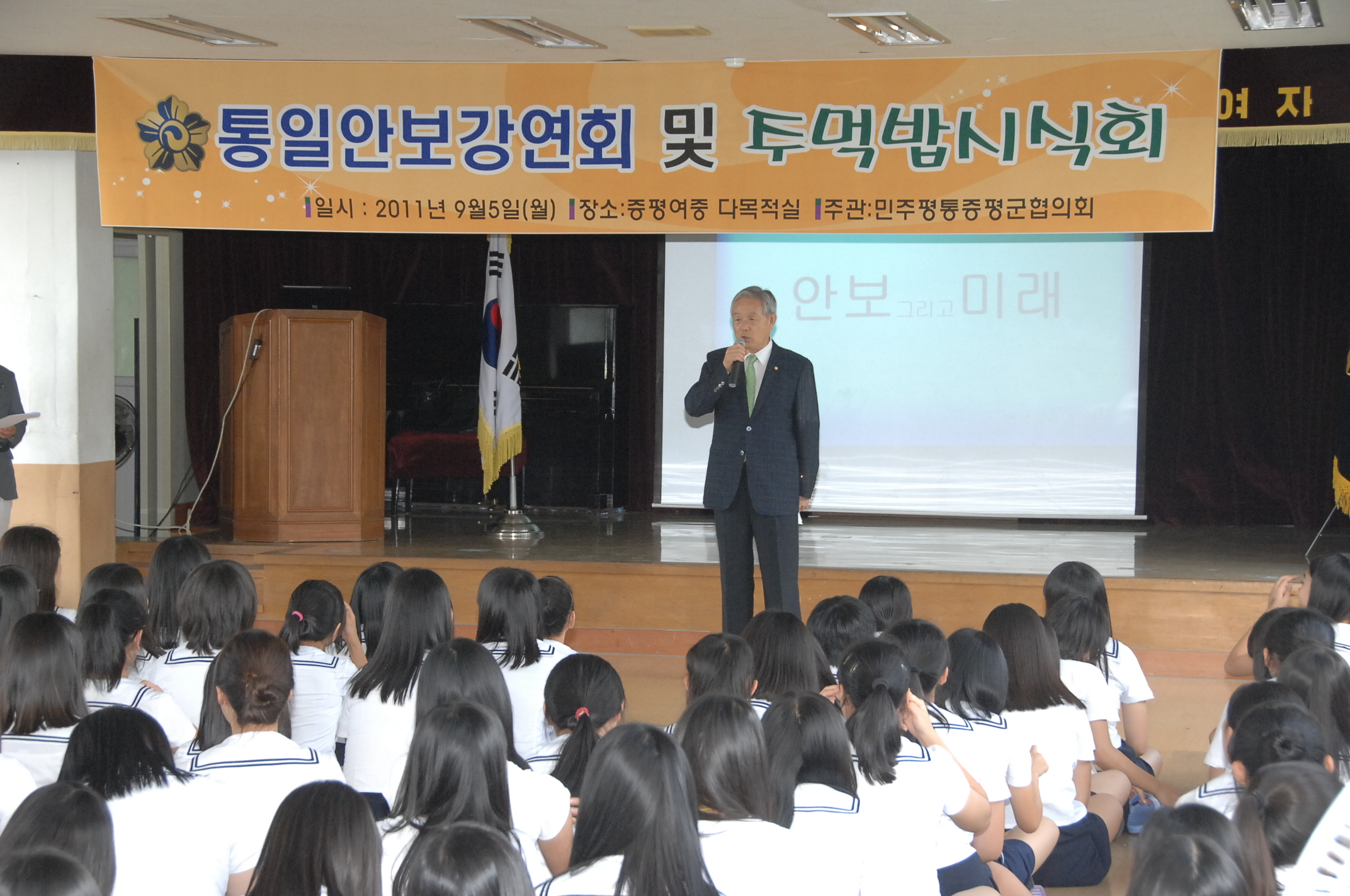 민주평화통일자문회의 증평군협의회(회장 김기환)은 작년에 이어 오는 9월 5일 오후 3시30분 증평여중 다목적실에서 2학년을 대상으로 안보강연회 및 주먹밥 시식회를 개최했다.[보도자료실 참조]