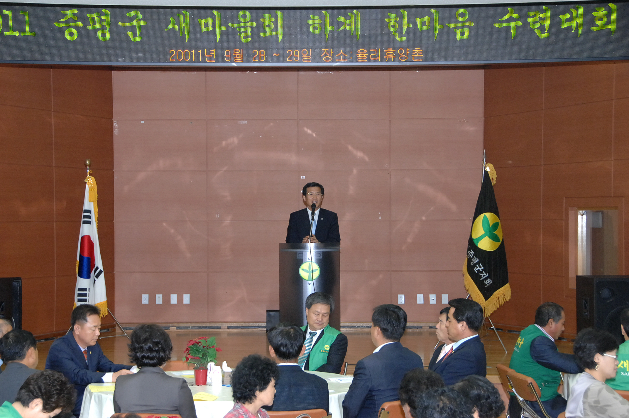 증평군새마을회(회장 박성현)는 28일 오후 3시 증평읍 율리 휴양촌에서 홍성열 증평군수, 박성현 증평군새마을회장을 비롯한 새마을지도자, 부녀회원, 직장회원, 문고회원 등 100여명이 참석한 가운데 ‘2011 증평군새마을회 하계수련 한마음 대회’를 개최했다.[보도자료실 참조]