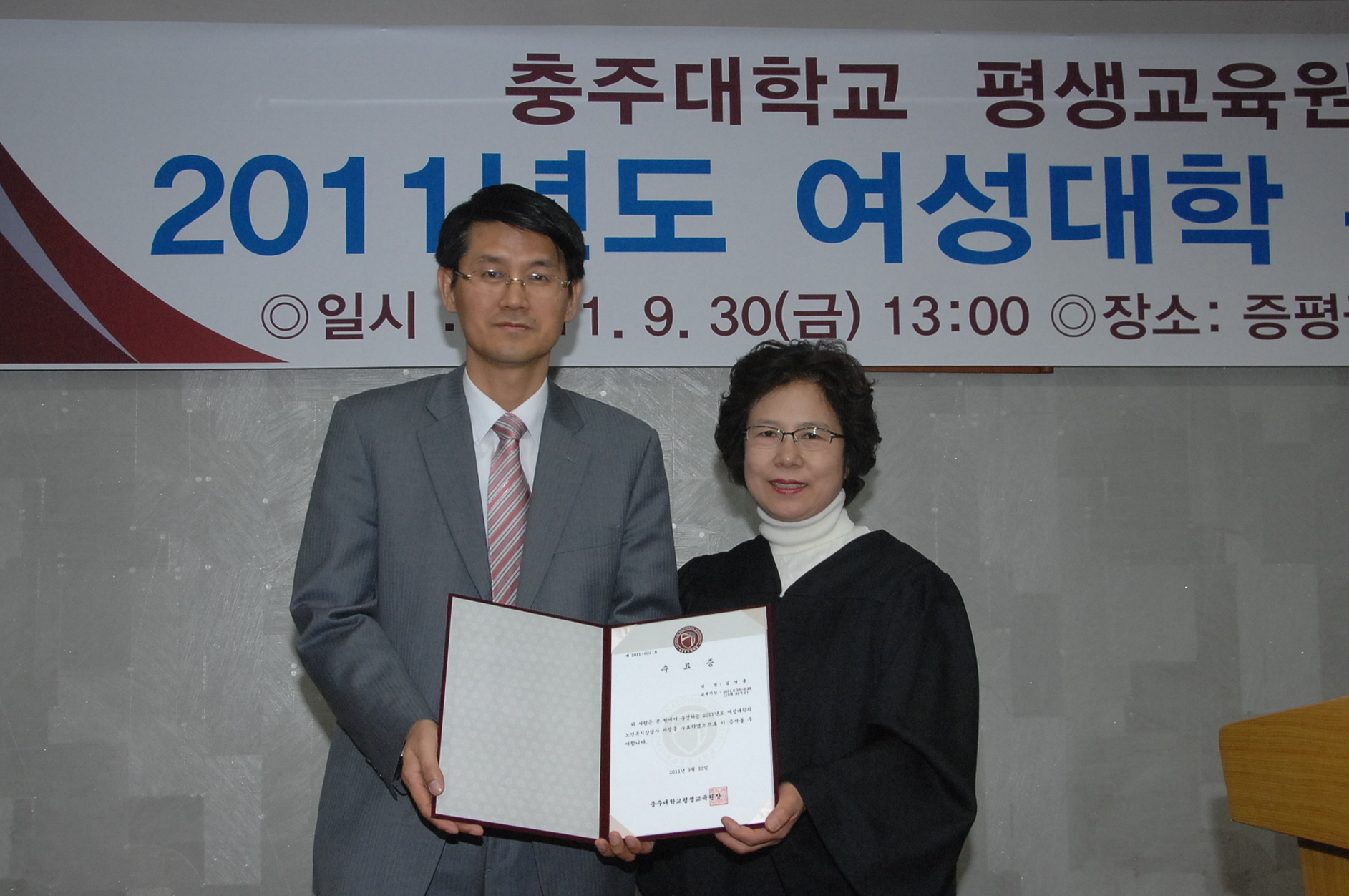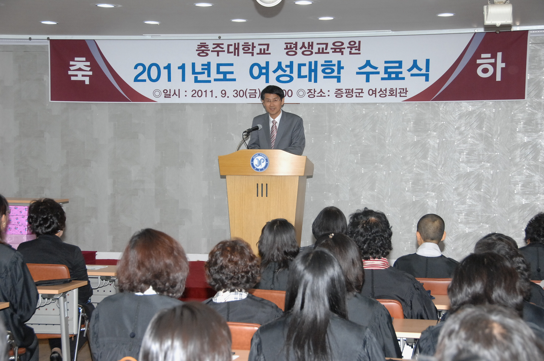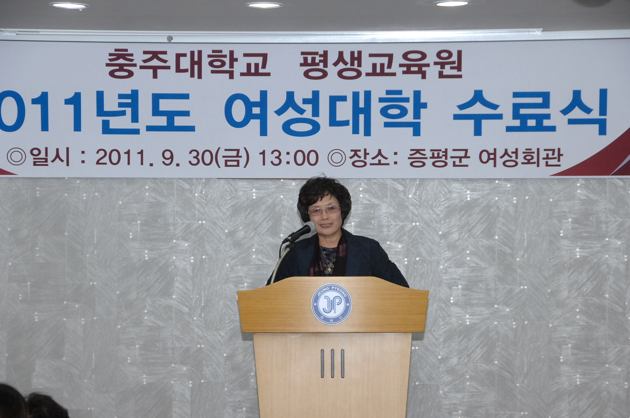 증평군이 여성들의 사회적 참여와 역할을 확대하기 위해 지난 6월 23일 개강했던 여성대학 참가자들이 9월 30일 증평여성회관에서 수료식을 가졌다.[보도자료실 참조]