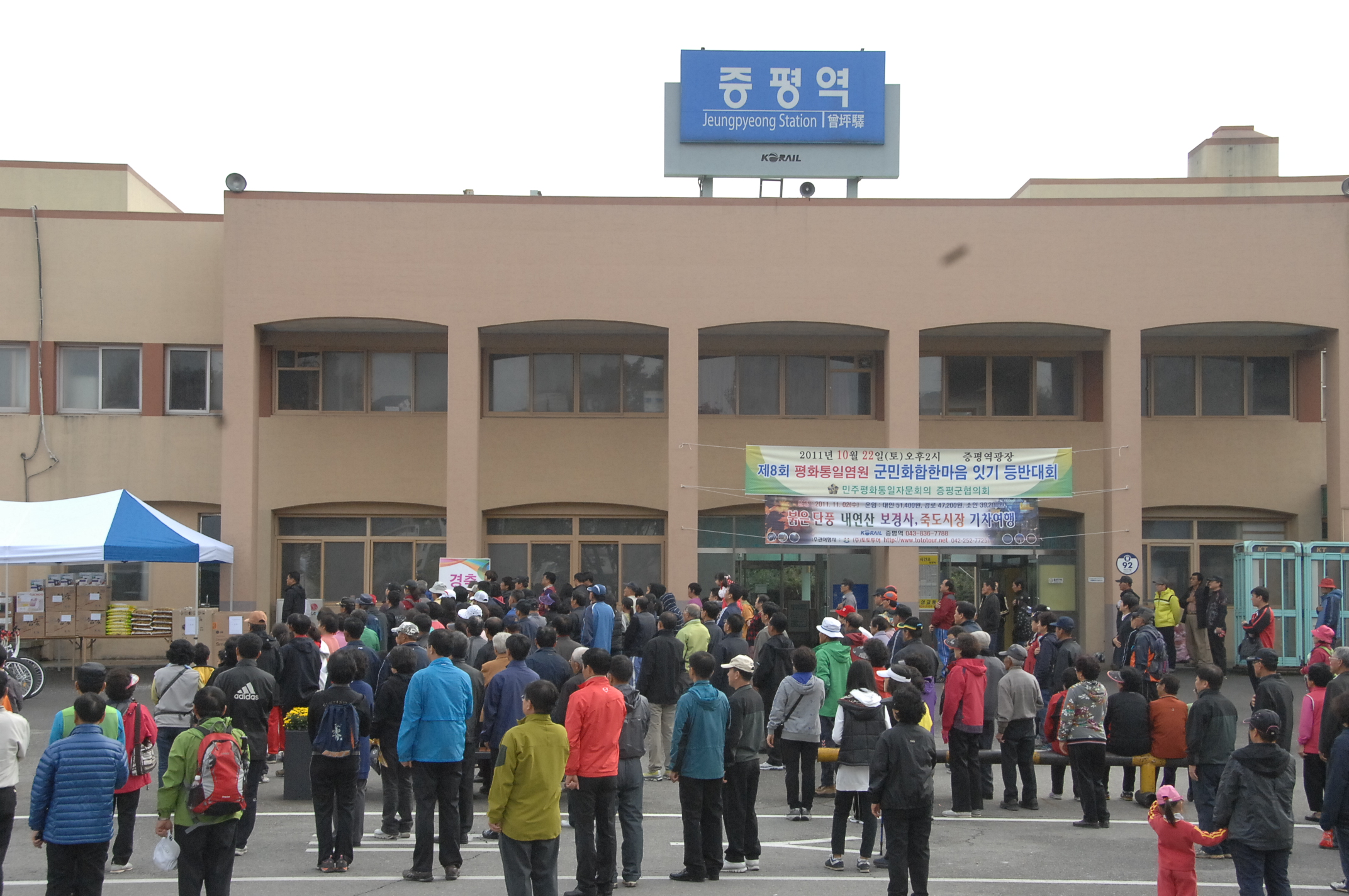 증평군민들의 평화통일 의지를 다지고 공동체 의식을 높이기 위해 마련된 제8회 평화통일 염원 증평군민 화합 한마음 잇기 등반대회가 22일 오후 2시부터 증평역 광장에서 열렸다.[보도자료실 참조]