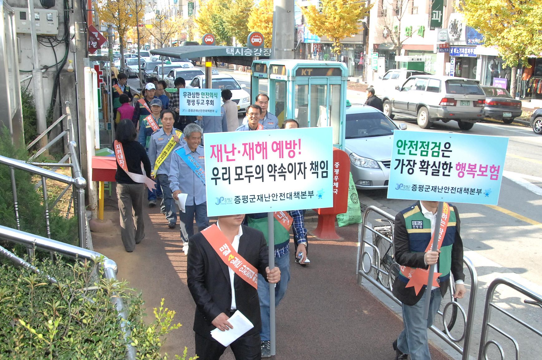 증평군은 4일 오전 10시 전통시장 및 터미널 등지에서 증평군 의용소방대원, 민방위대원 및 공무원 등 70여명이 참가한 가운데 ‘제188차 안전점검의 날 단풍철 산악 안전사고 예방 및 가을철 산불방지 예방대책 캠페인’을 실시했다. [보도자료실 참조]