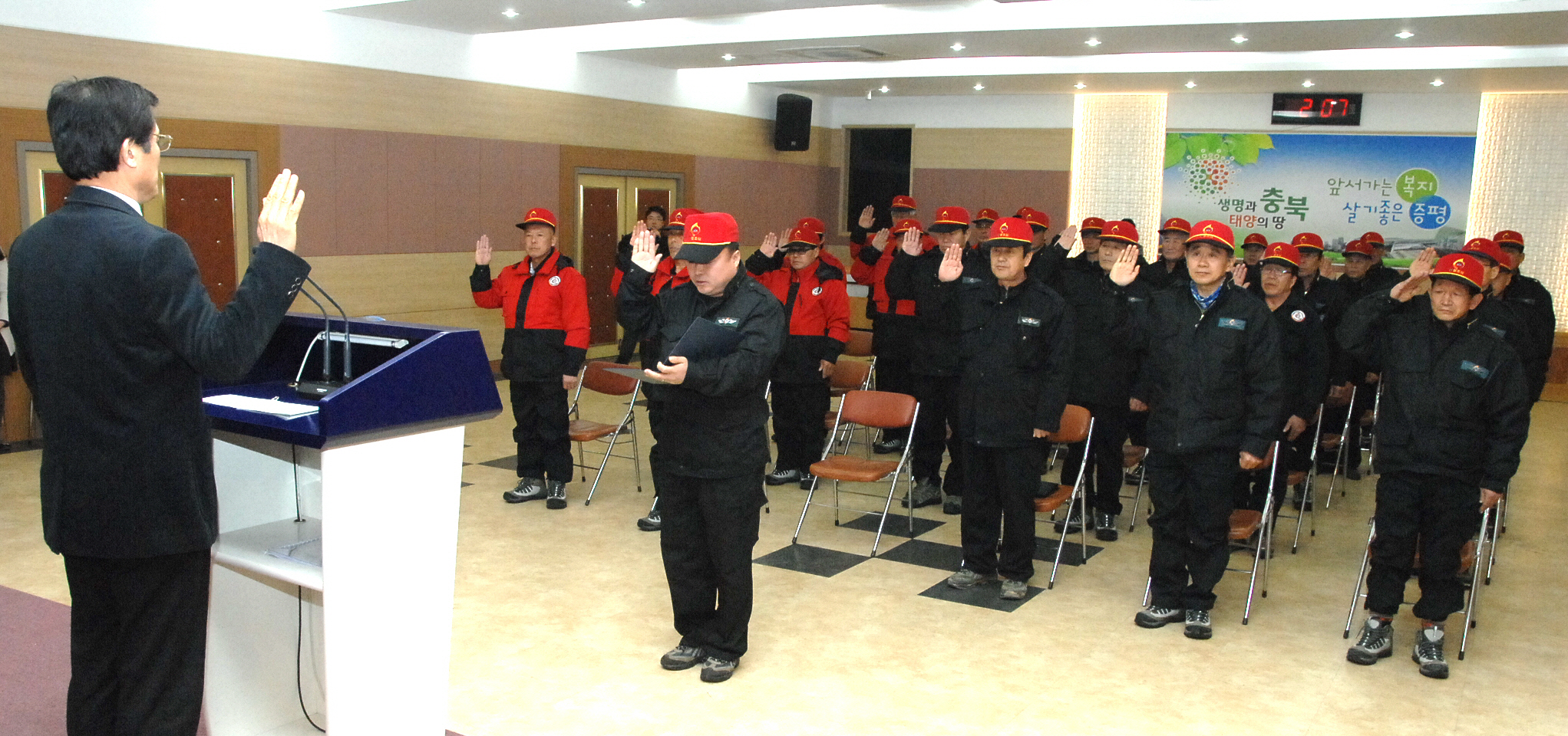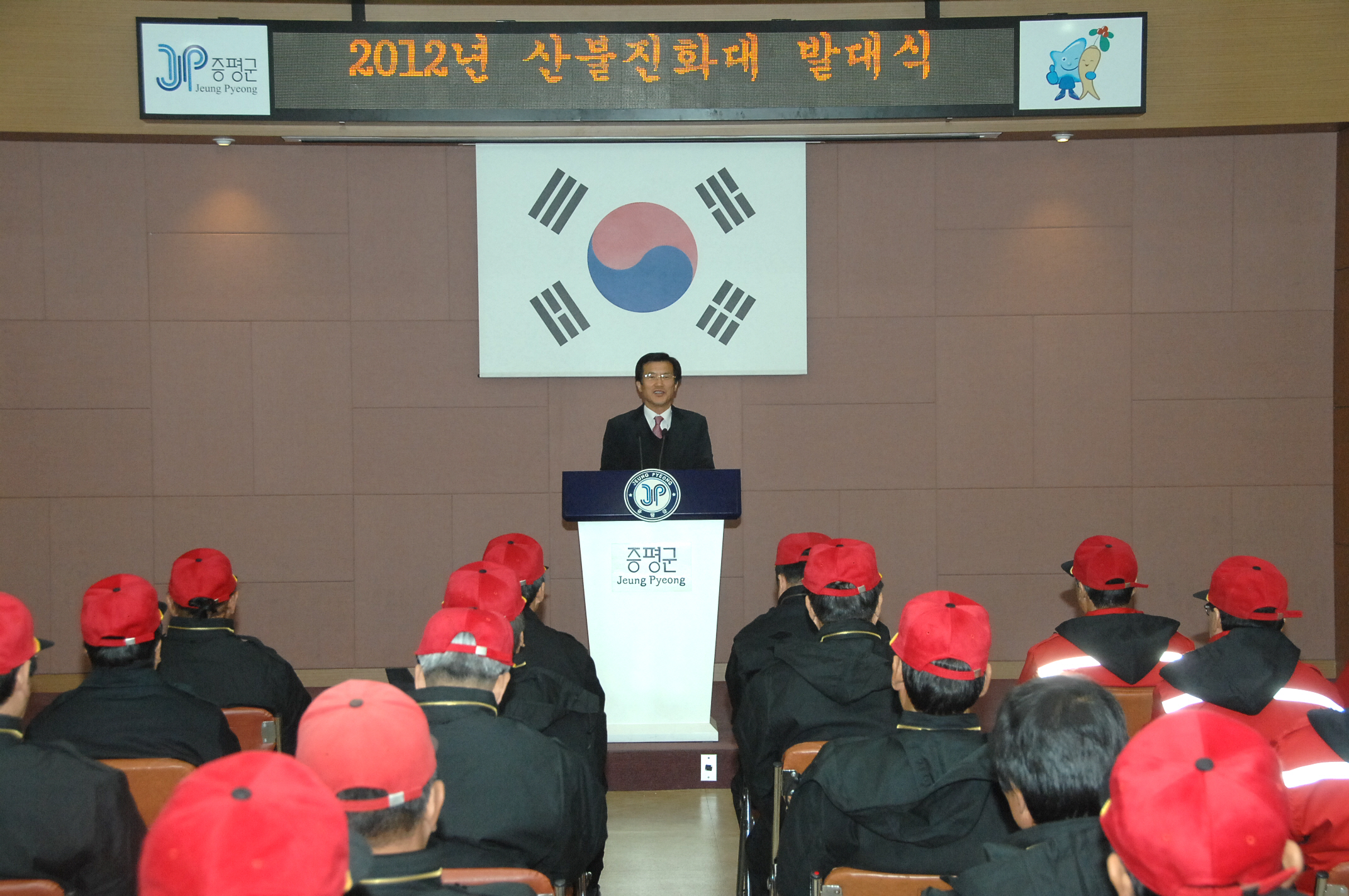 증평군은 7일 군청 대회의실에서 산불전문예방 진화대 20명과 감시원 9명, 관계 공무원 등이 참석한 가운데 산불전문예방 진화대 및 감시원 발대식을 개최하고 본격적인 산불감시활동을 시작했다. [보도자료실 참조]