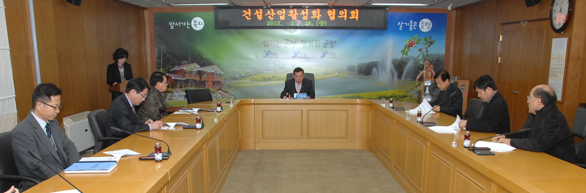 증평군은 24일 오전 11시 군청 소회의실에서 김선탁 대한건설협회 증평·괴산지회장을 비롯한 7명의 위원이 참석한 가운데 ‘지역건설 산업 활성화 협의회’를 개최했다.[보도자료실 참조]