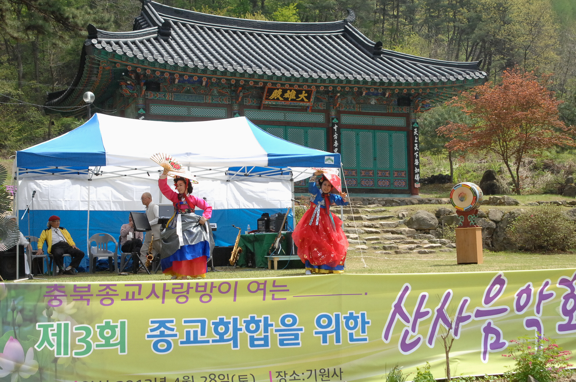 충북종교인사랑방(방주 곽동철 충주문화동성당 주임신부)이 주최하는 제3회 종교화합을 위한 "효" 산사음악회가 28일 오전 11시 증평읍 남하리 기원사(주지스님 호산스님)에서 홍성열군수, 김재룡군의장, 김봉회도의원 등 기관단체장과 지역 어르신 등 약 300여명이 참석한 가운데 열렸다.