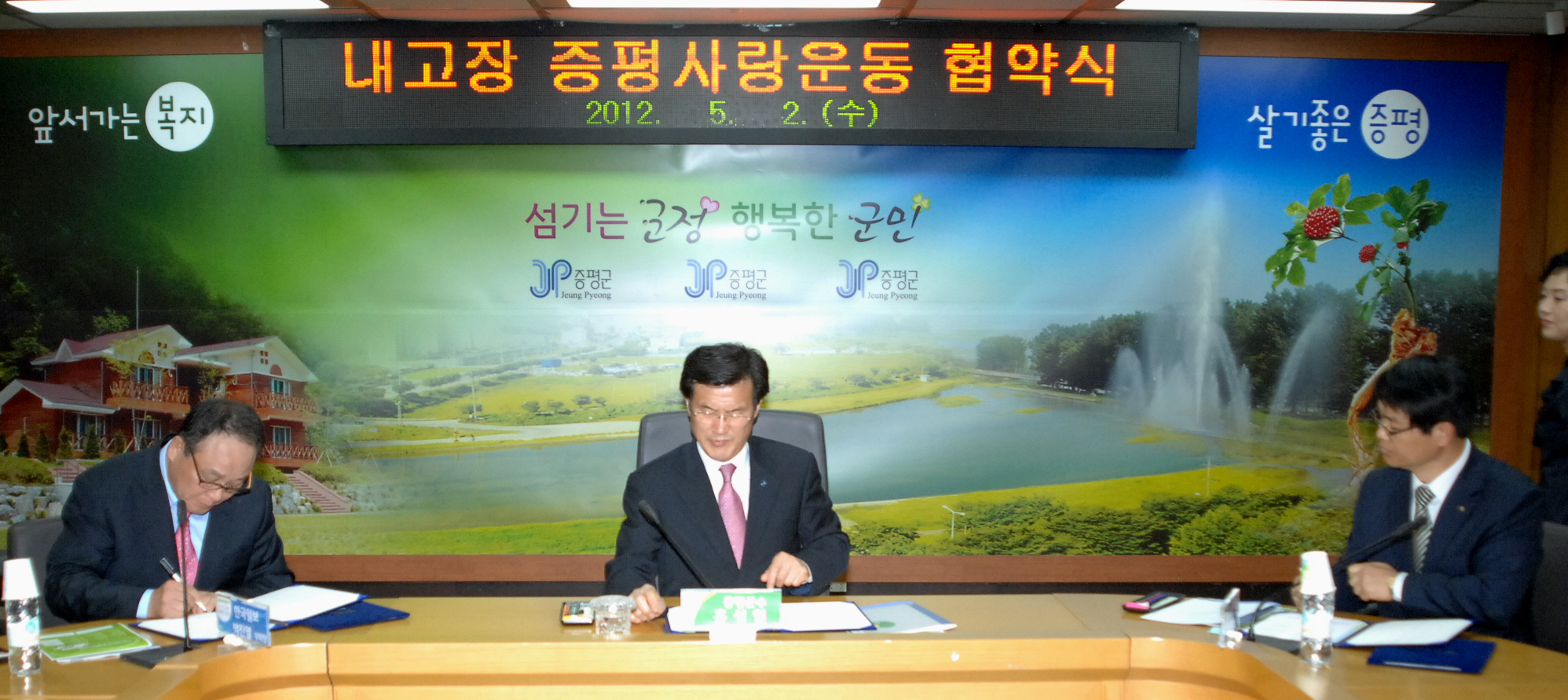 증평군은 2일 오후 2시 군청 소회의실에서 KB국민카드, 한국일보, 증평군민장학회(이사장 홍성열) 관계자 등이 참석한 가운데 지역사랑 카드발급 및 사용을 통해 장학금을 적립하는 내 고장 증평사랑 운동 협약을 체결했다