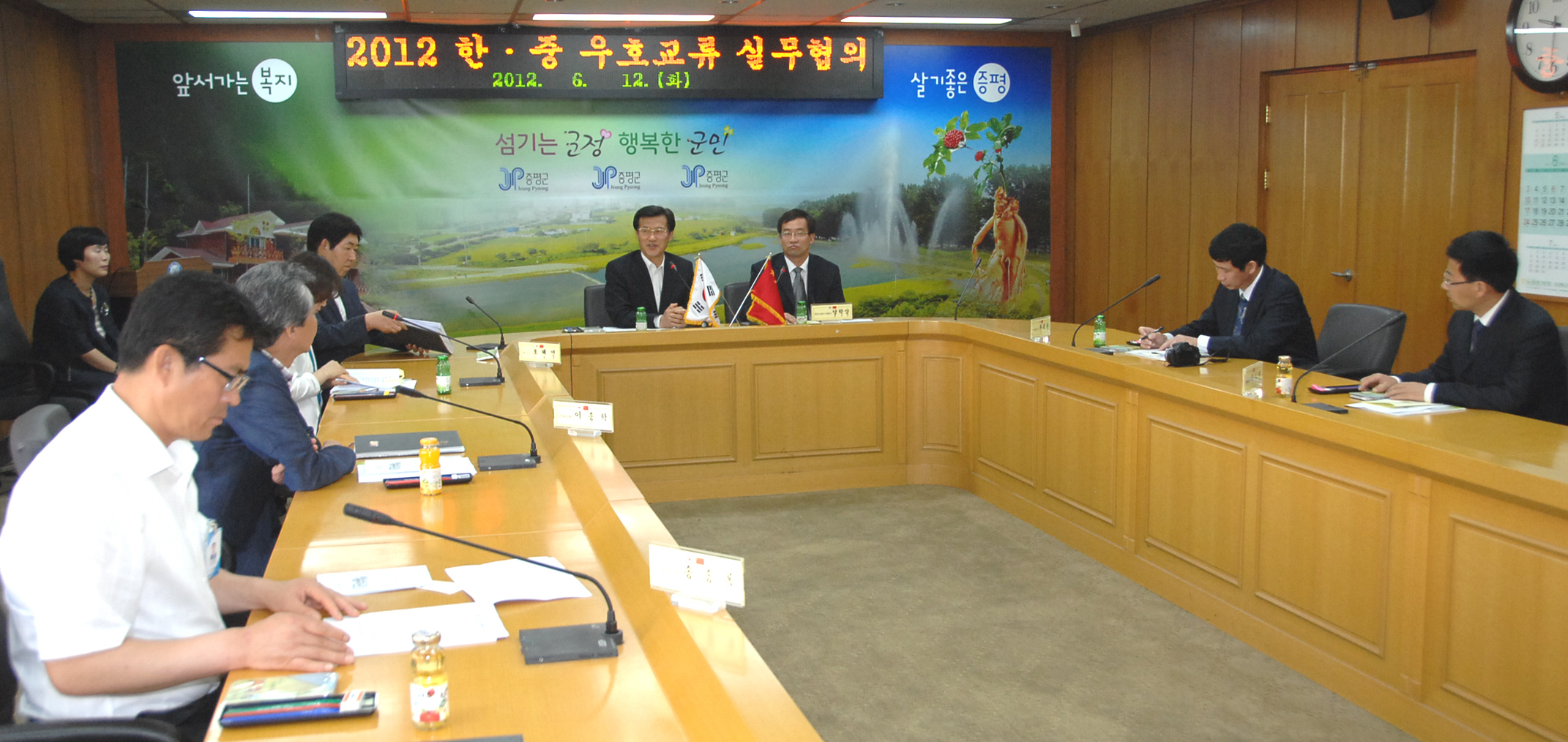 증평군과 2005년부터 우호교류를 맺고 있는 중국 강소성 꿘난현(灌南縣)에서 청소년 교육교류 및 문화예술교류 협의를 위한 실무협의단이 지난 11일부터 13일까지 방문일정을 마치고 귀국했다. [보도자료실 참조]