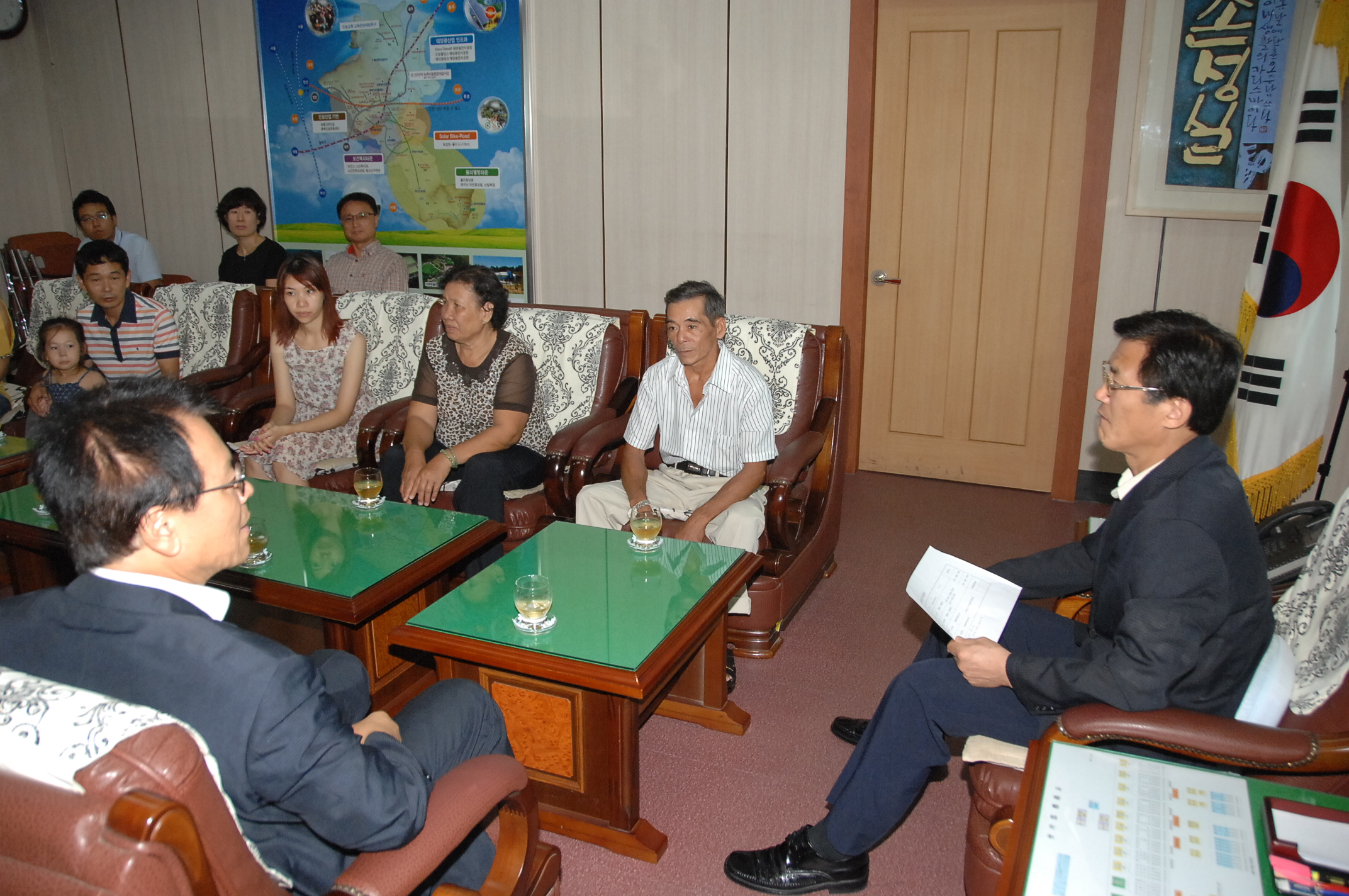 증평군에 거주하고 있는 두엉티깜(24세)씨는 고국인 베트남에서 친정부모를 초청한 가운데 남편 김대경(42세)씨와 바르게살기운동증평군협의회 임원 등 10여명과 함께 27일 오전 10시 군청을 방문해 홍성열 증평군수와 환담을 나눴다. [보도자료실 참조]