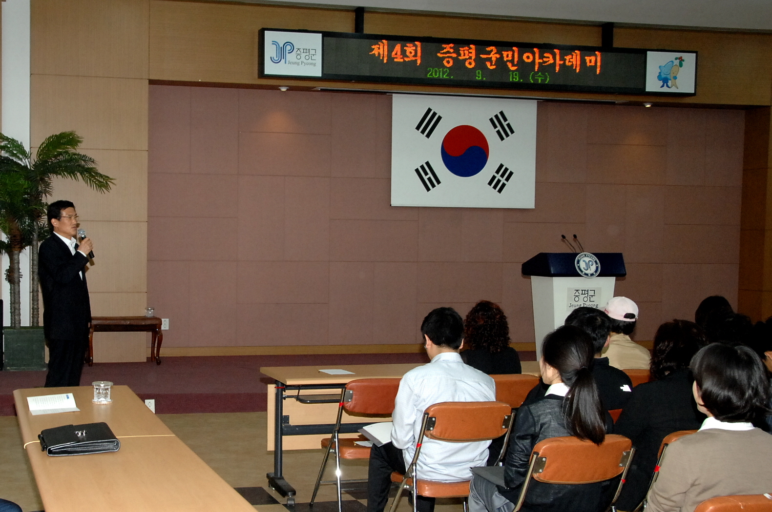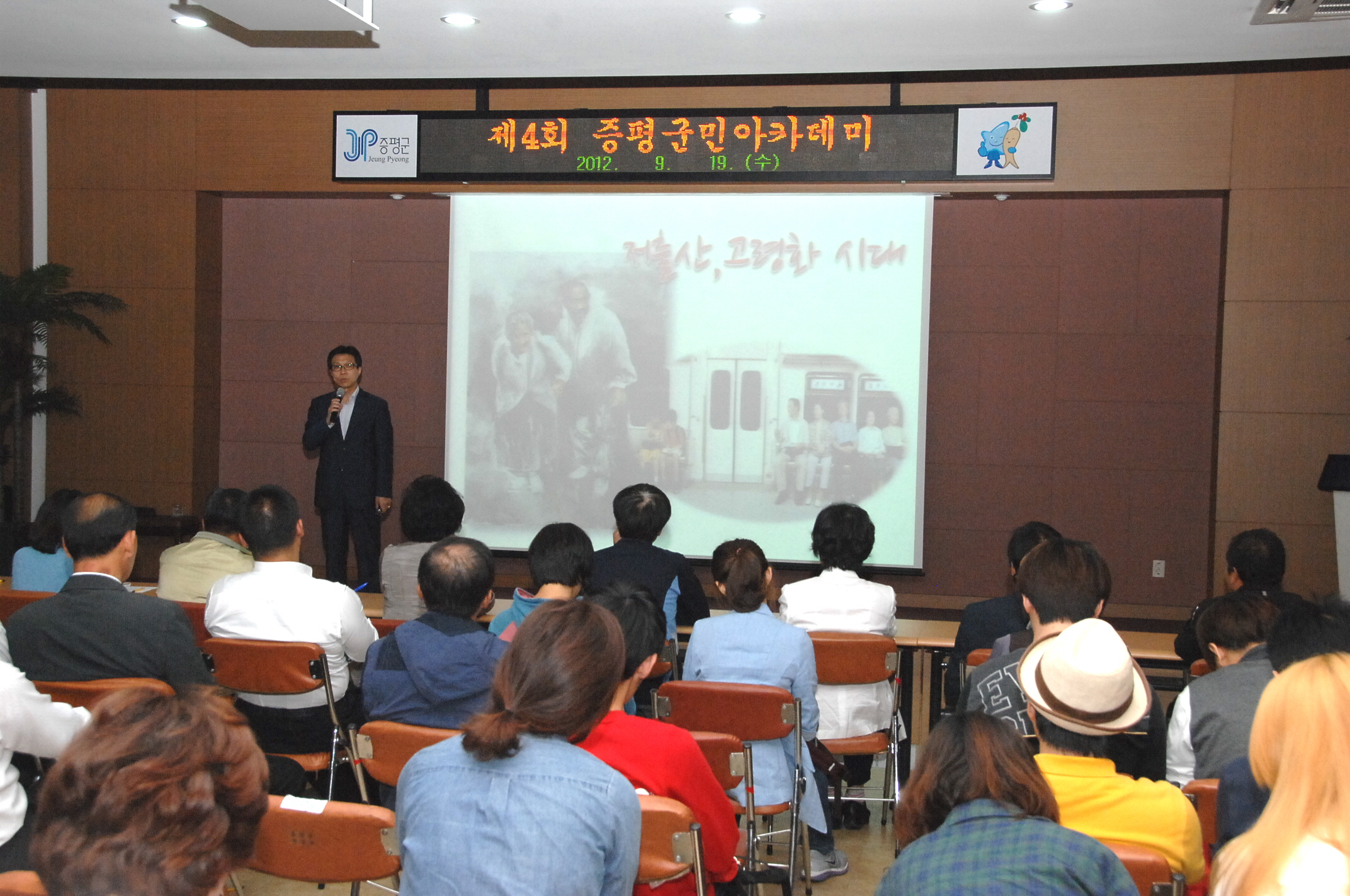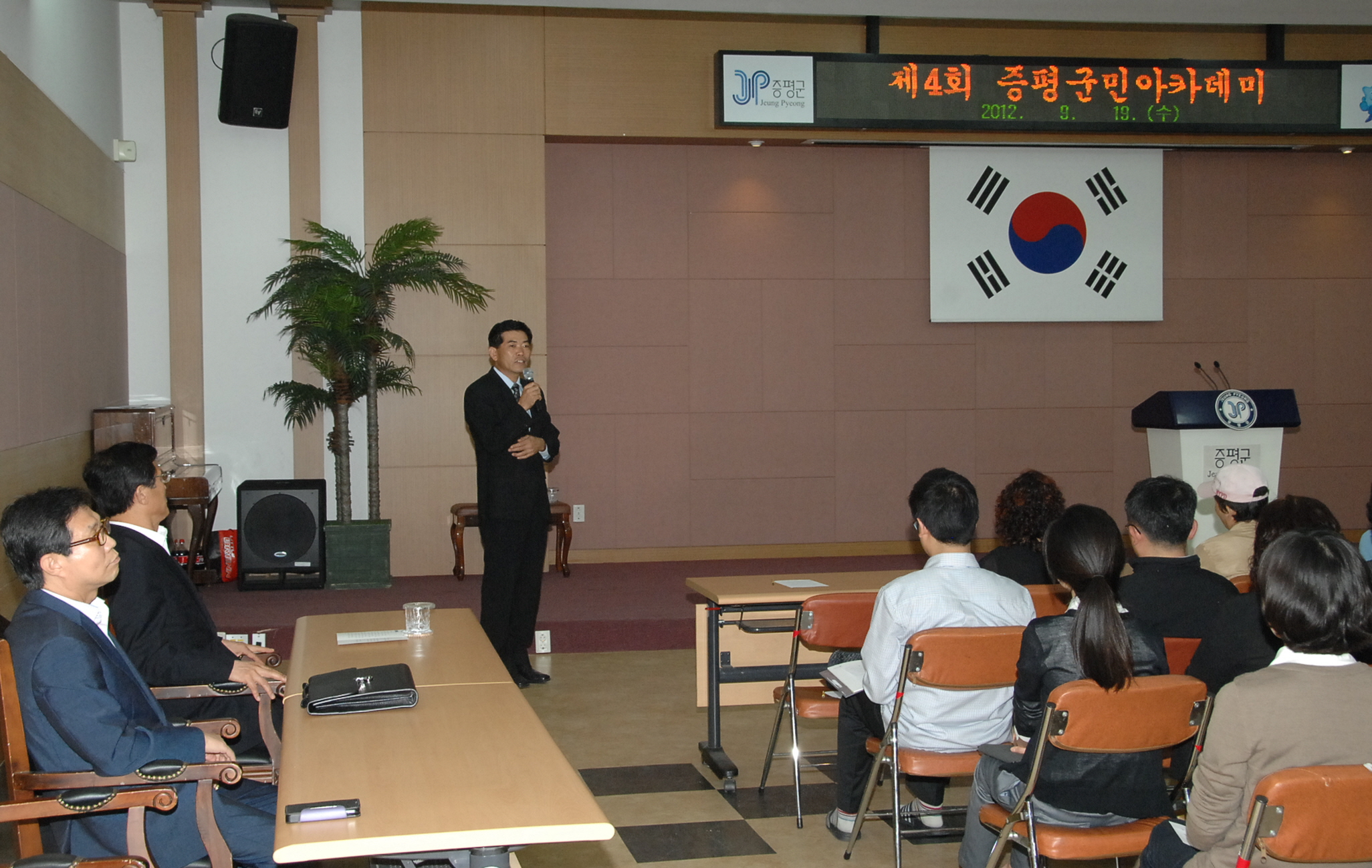 증평군에서는 19일 오후 3시 군청 대회의실에서 조관일 창의경영연구소 대표를 초빙해 ‘생각을 바꾸면 길이 보인다’를 주제로 군민 아카데미 네 번째 강연을 개최했다.[9월12일 보도자료 참조]