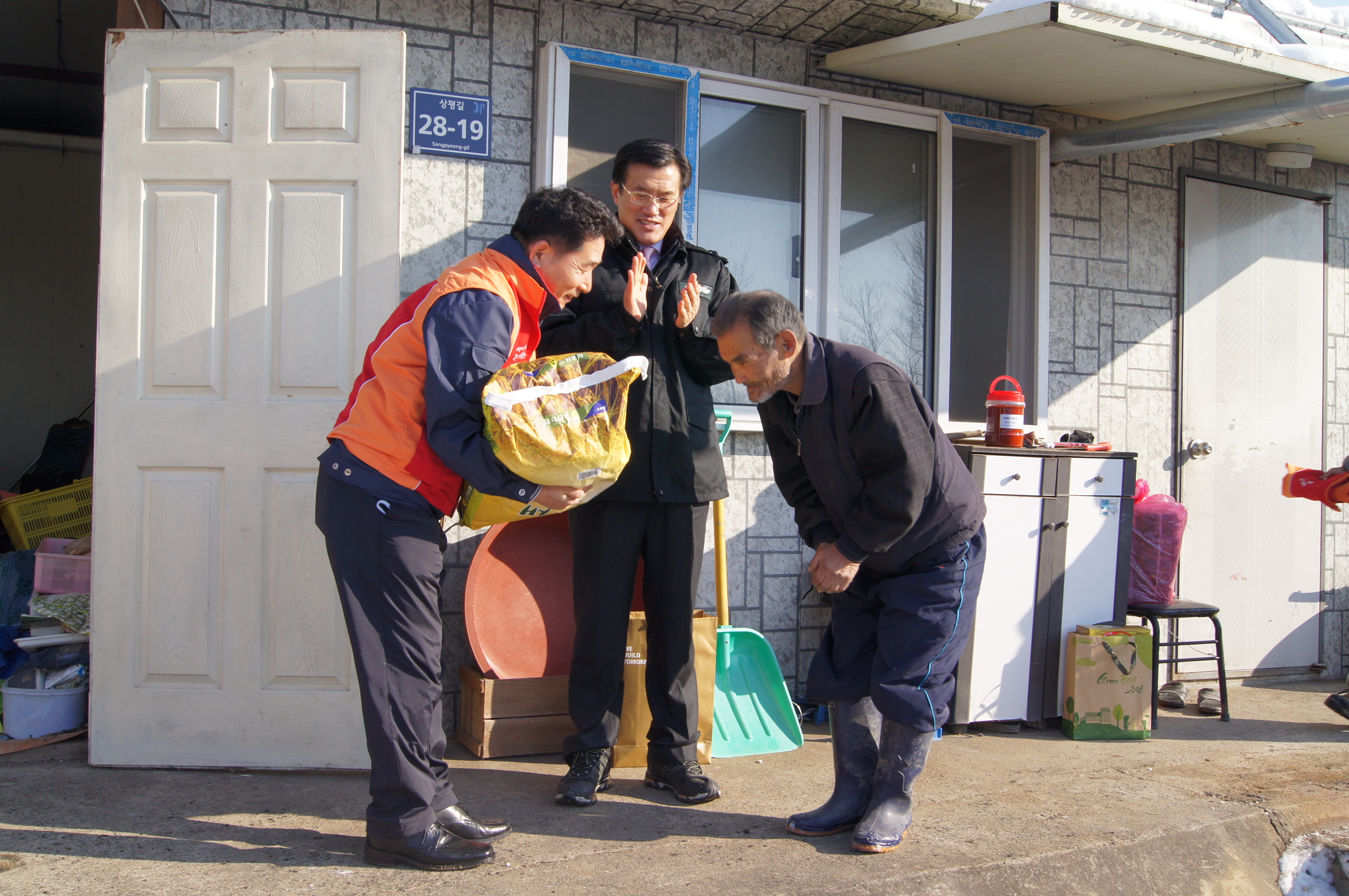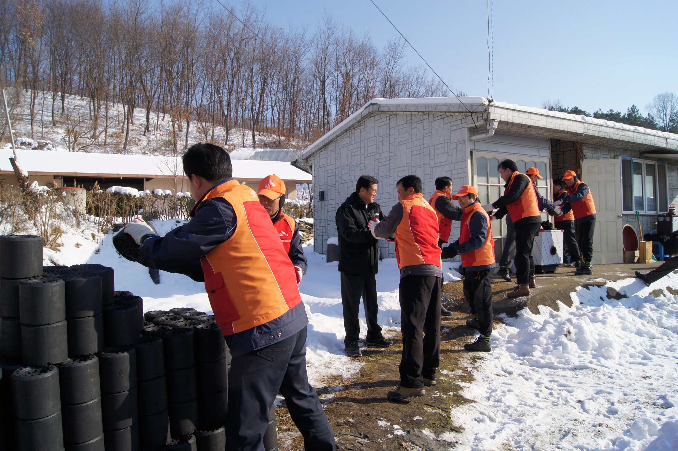 SK건설(대표 최광철, 조기행)과 협력업체들은 지난 10일 오후 증평군 증평읍 일원에서 저소득계층이 따뜻한 겨울을 보낼 수 있도록 연탄과 난방유, 백미 등을 전달했다. [보도자료실 참조]