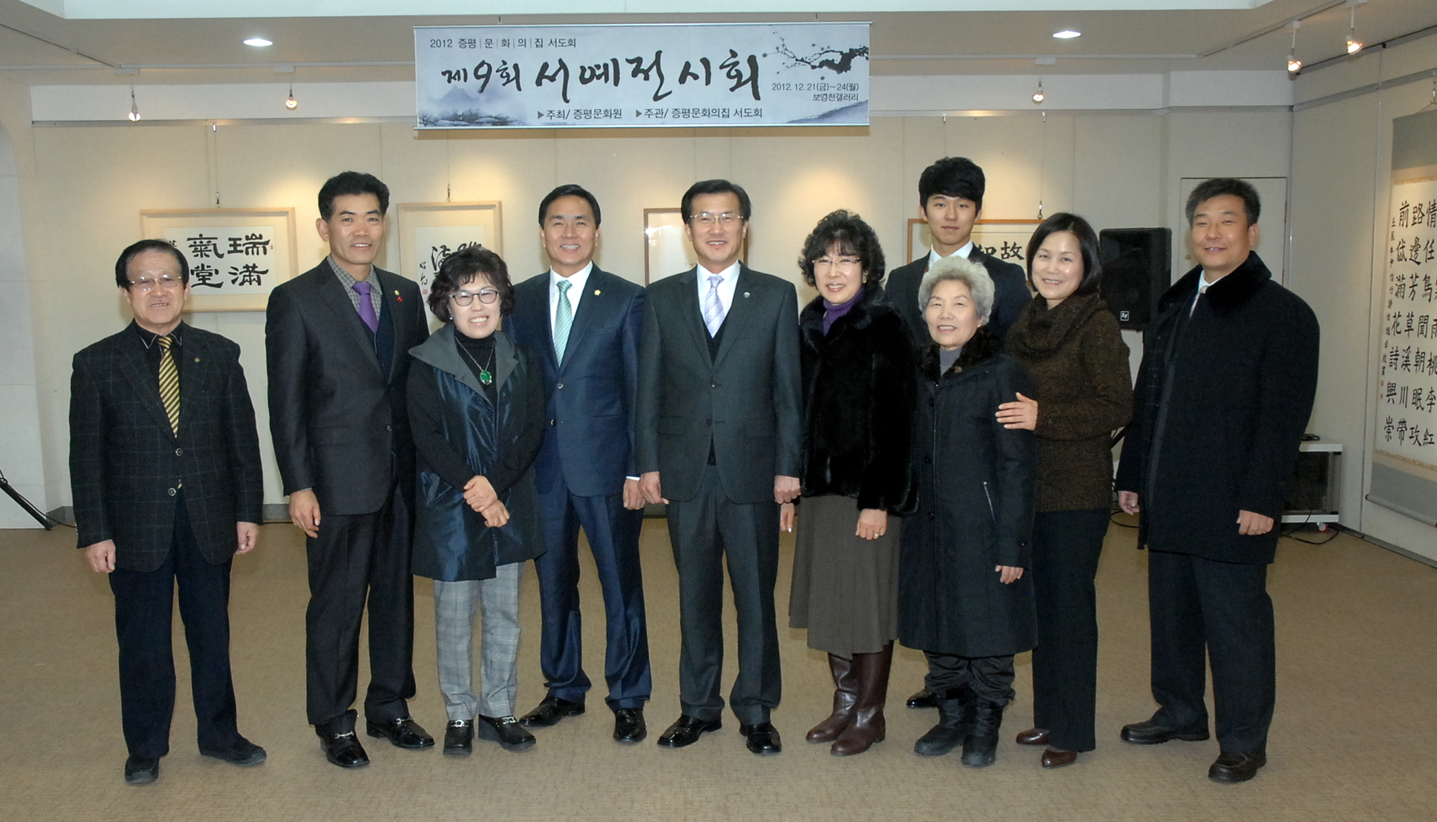 20일 증평문화센터 1층 보강천갤러리에서는 증평문화원과 증평문화의집 공동 주최로 2012 증평문화의집 ‘서도회 ’강좌 프로그램 참가자들이 강좌를 통해 갈고 닦은 솜씨를 뽐내는 제9회 서예전시회를 갖고 오는 24일까지 전시한다
