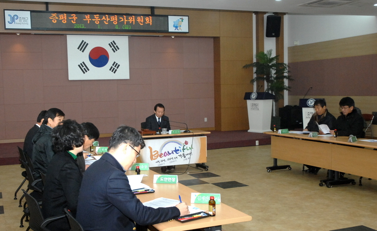 증평군은 8일 오전 군청 대회의실에서 이상칠 부군수 주재로 부동산평가위원, 감정평가사 12명 등이 참석한 가운데 부동산평가위원회를 개최했다.[보도자료실 참조]