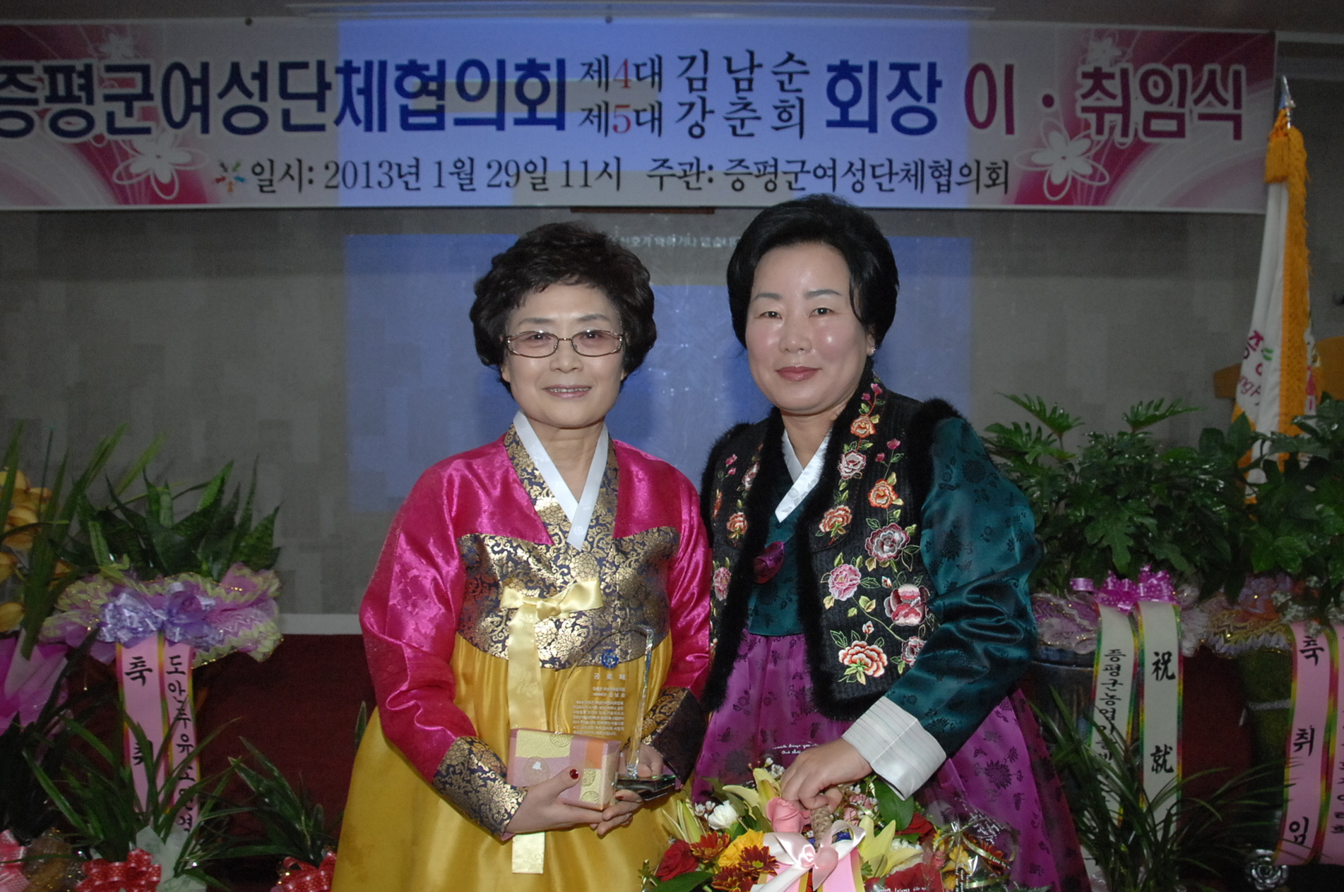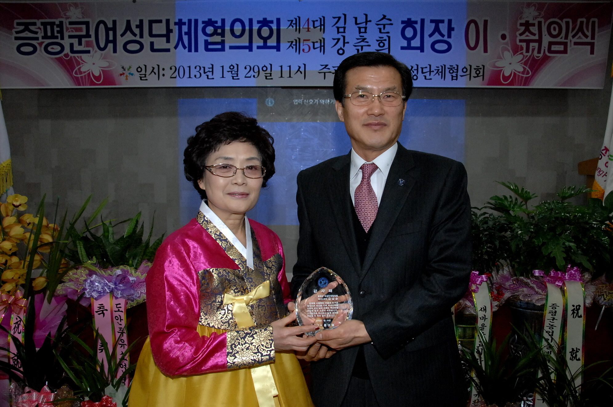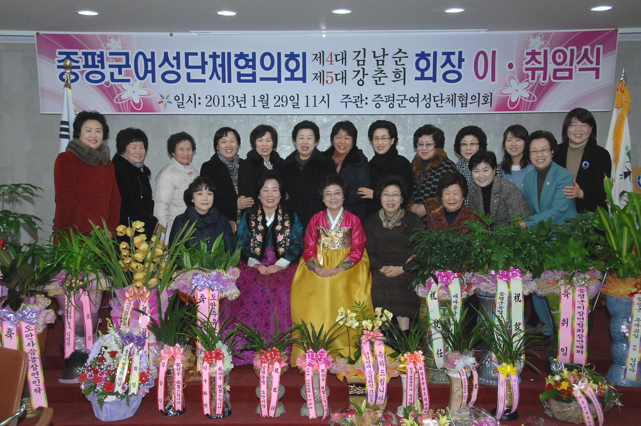 증평군 여성단체협의회는 29일 오전 11시 여성회관에서 여성단체협의회장 이․취임식을 갖고 제5대 회장에 강춘희(54세)씨를 추대했다.[증평보도자료실]