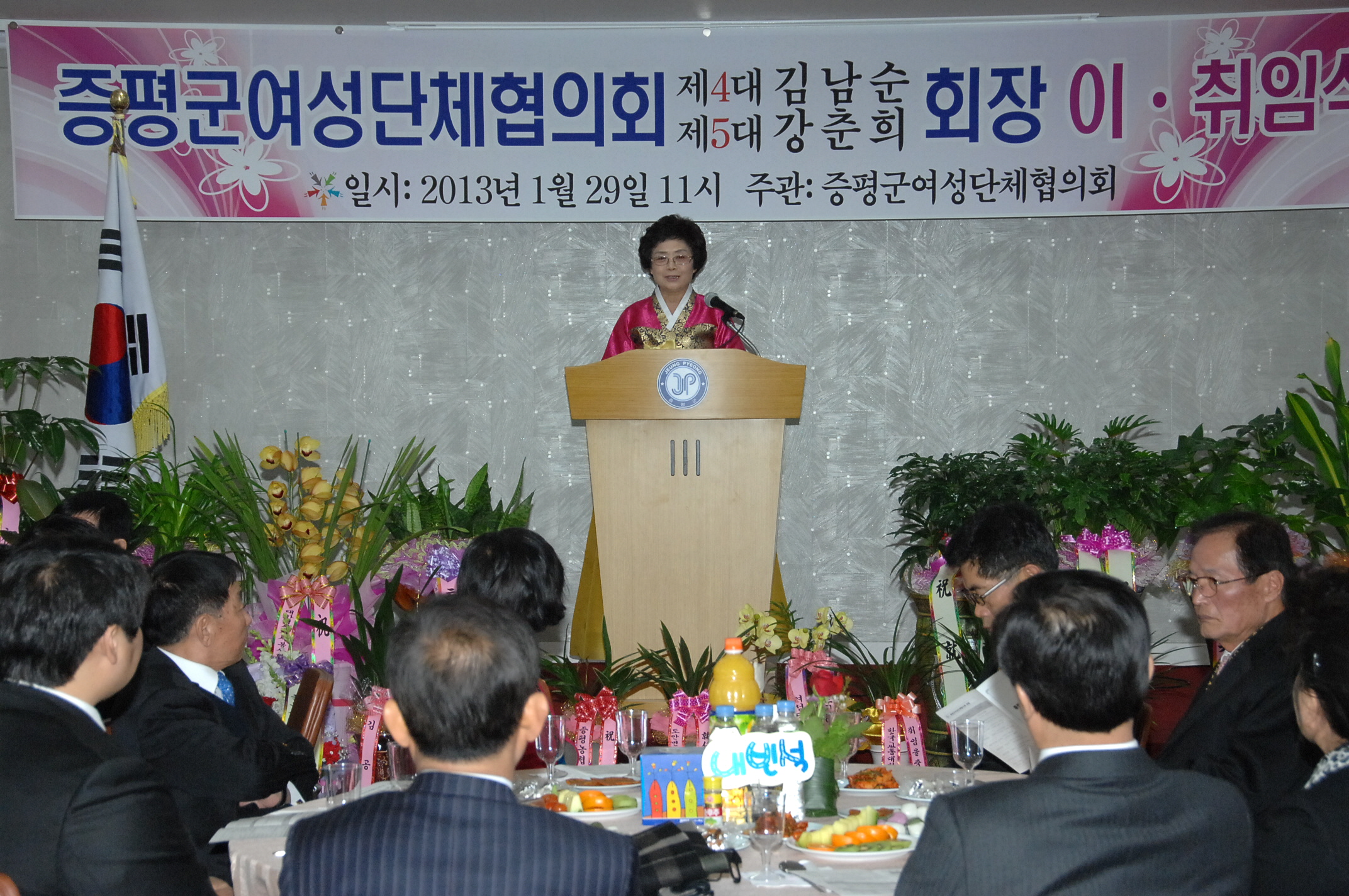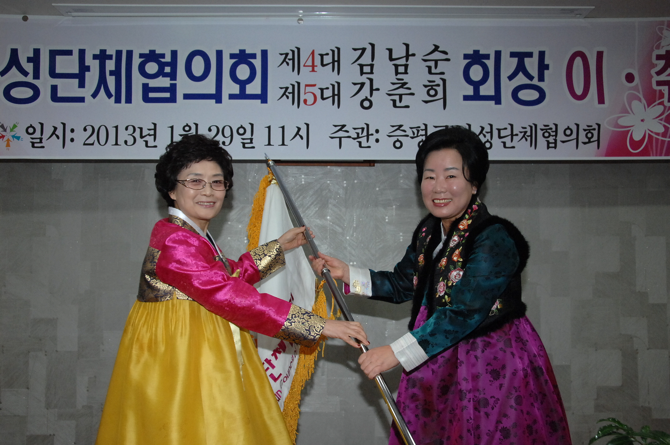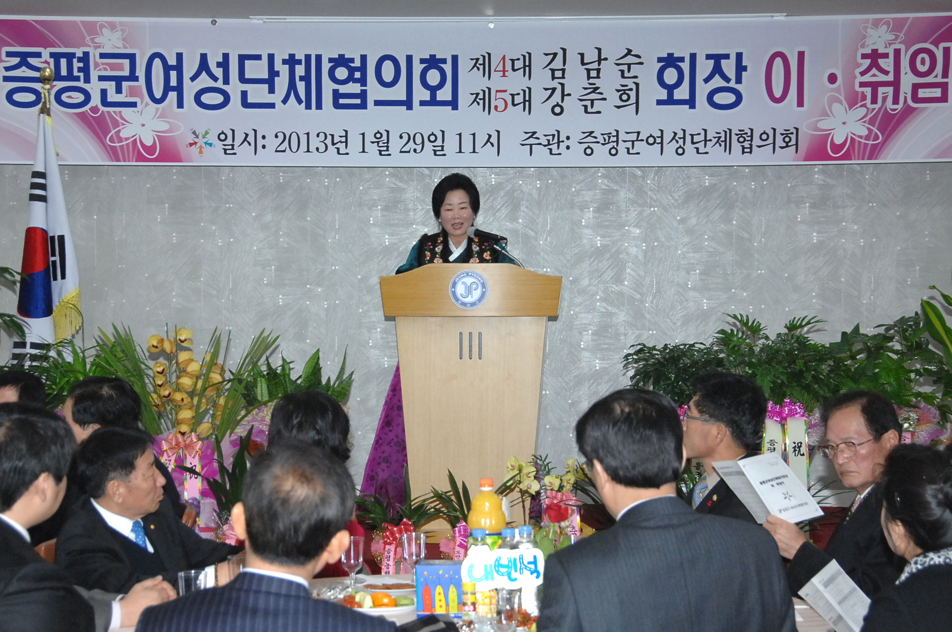 증평군 여성단체협의회는 29일 오전 11시 여성회관에서 여성단체협의회장 이․취임식을 갖고 제5대 회장에 강춘희(54세)씨를 추대했다.[증평보도자료실]