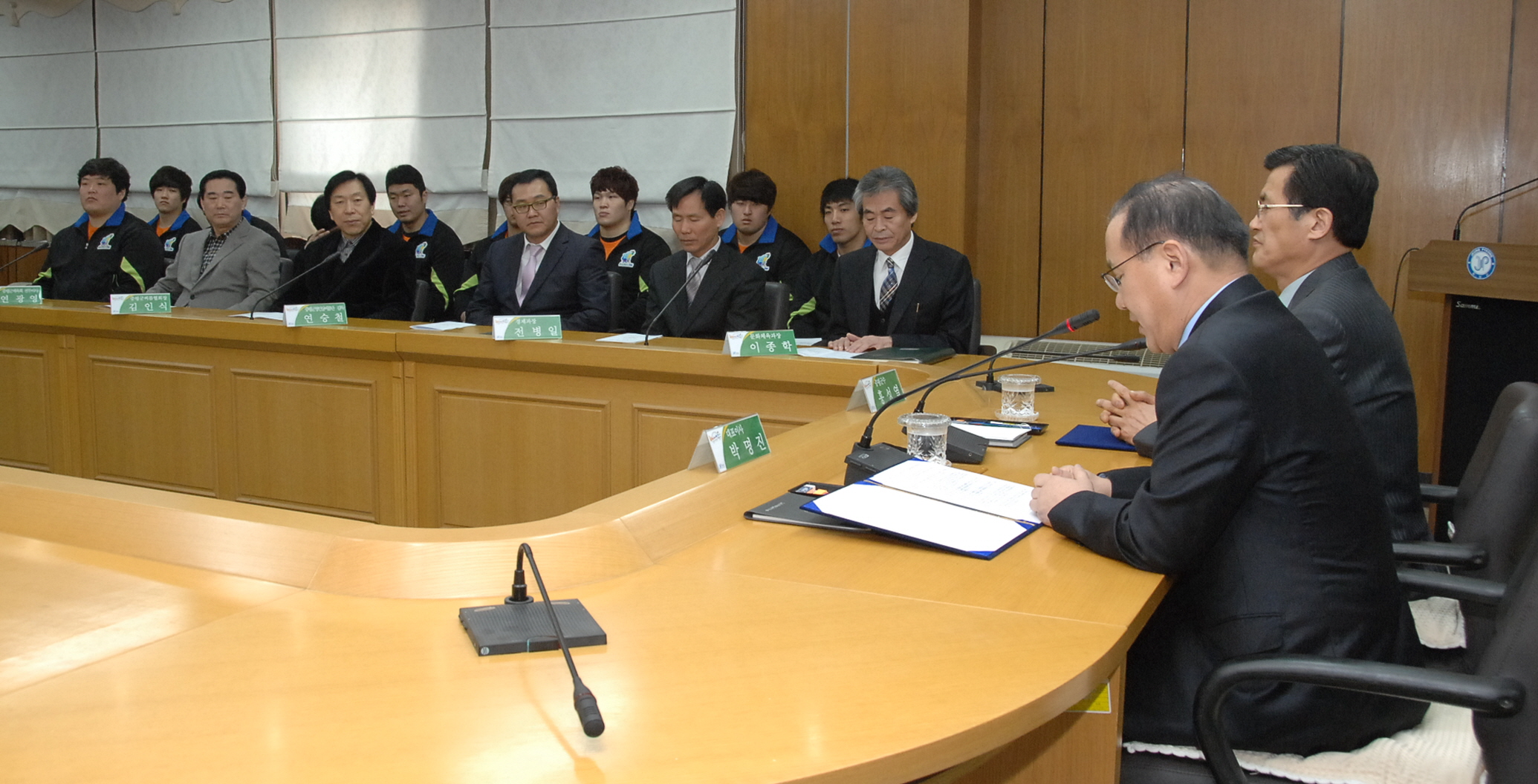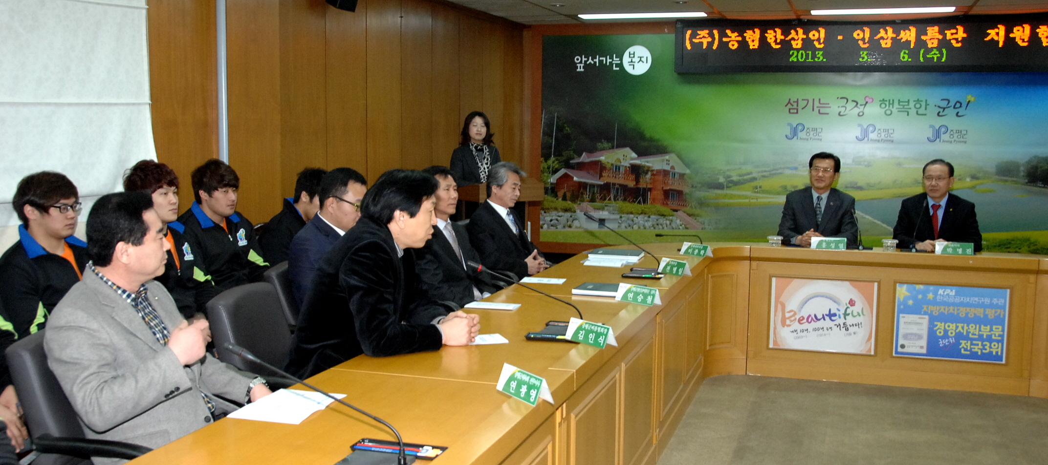증평군청 인삼씨름단과 (주)농협한삼인은 6일 오전 10시 증평군청 소회의실에서 5,000만원 상당의 후원금 및 홍삼제품을 지원하는 지원협약을 체결했다. [보도자료실 참조]
