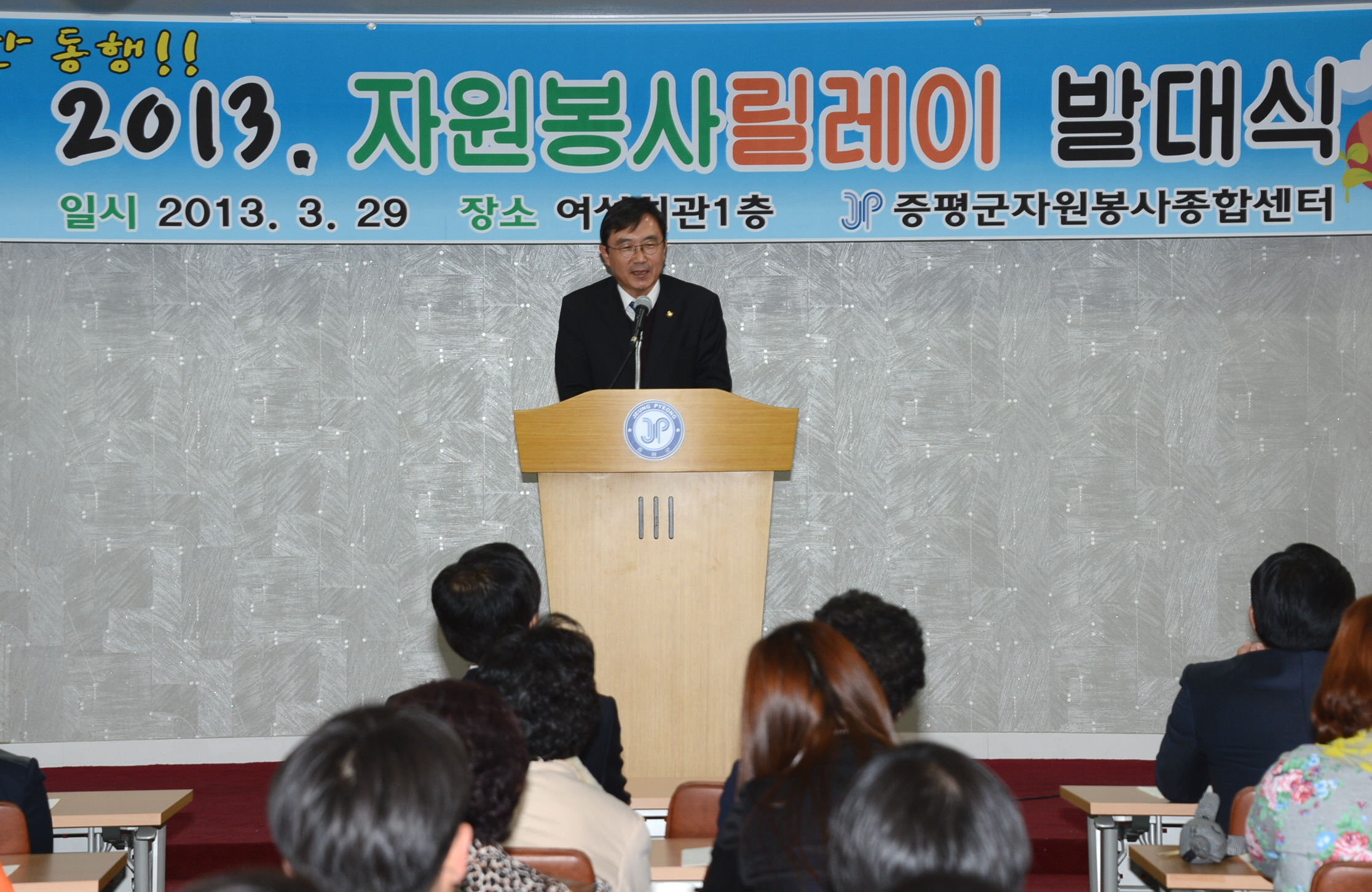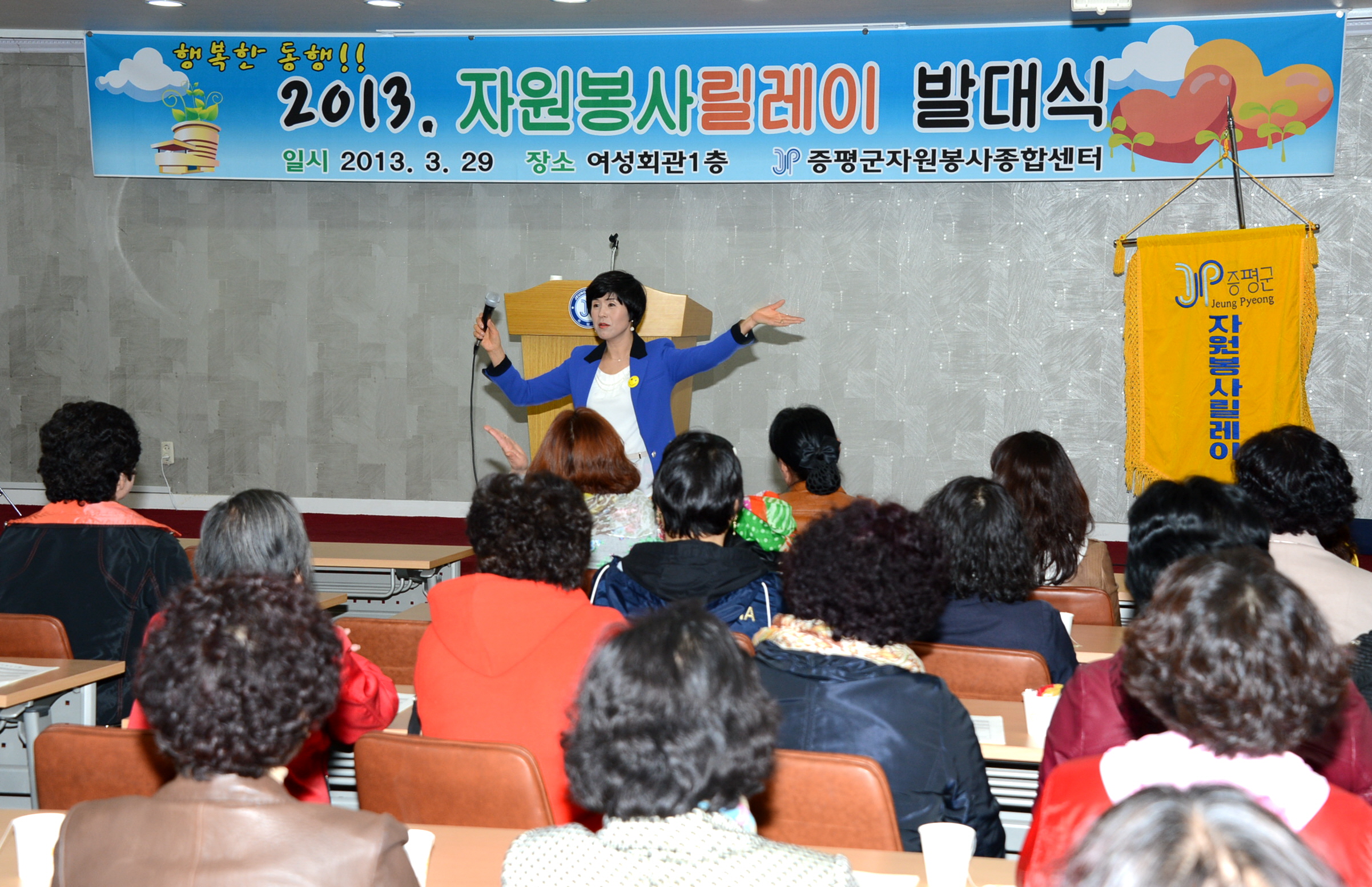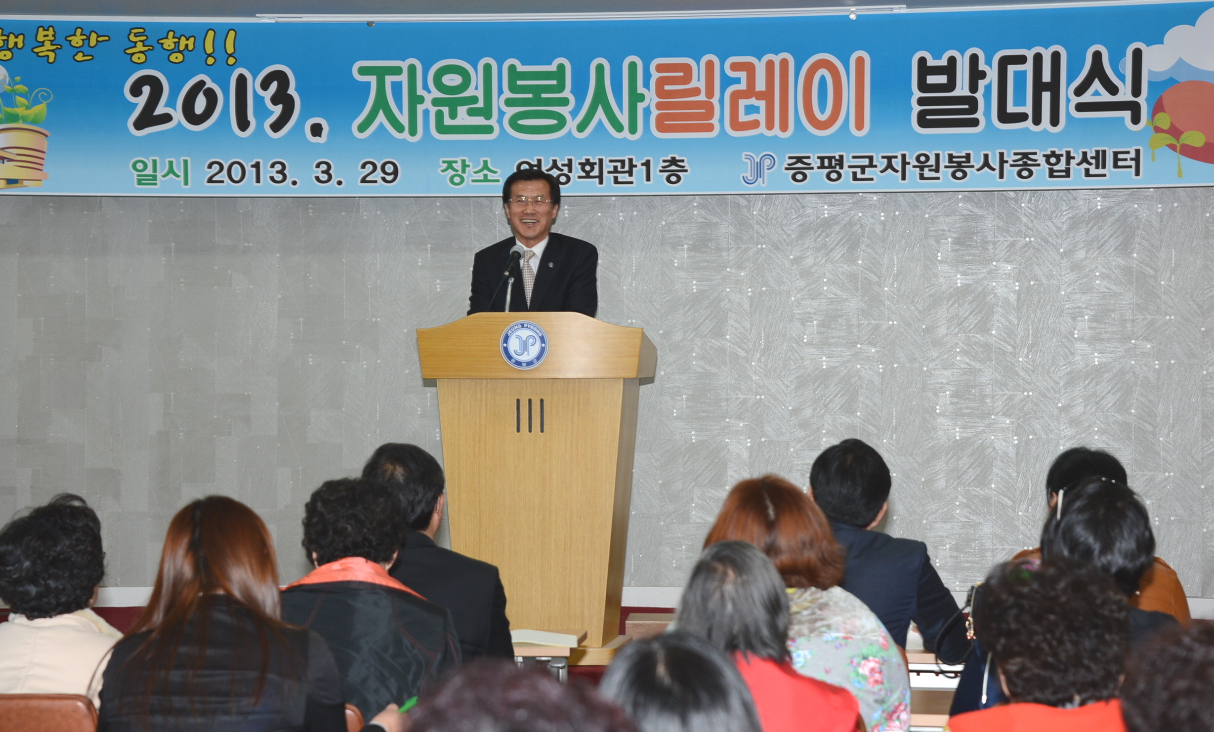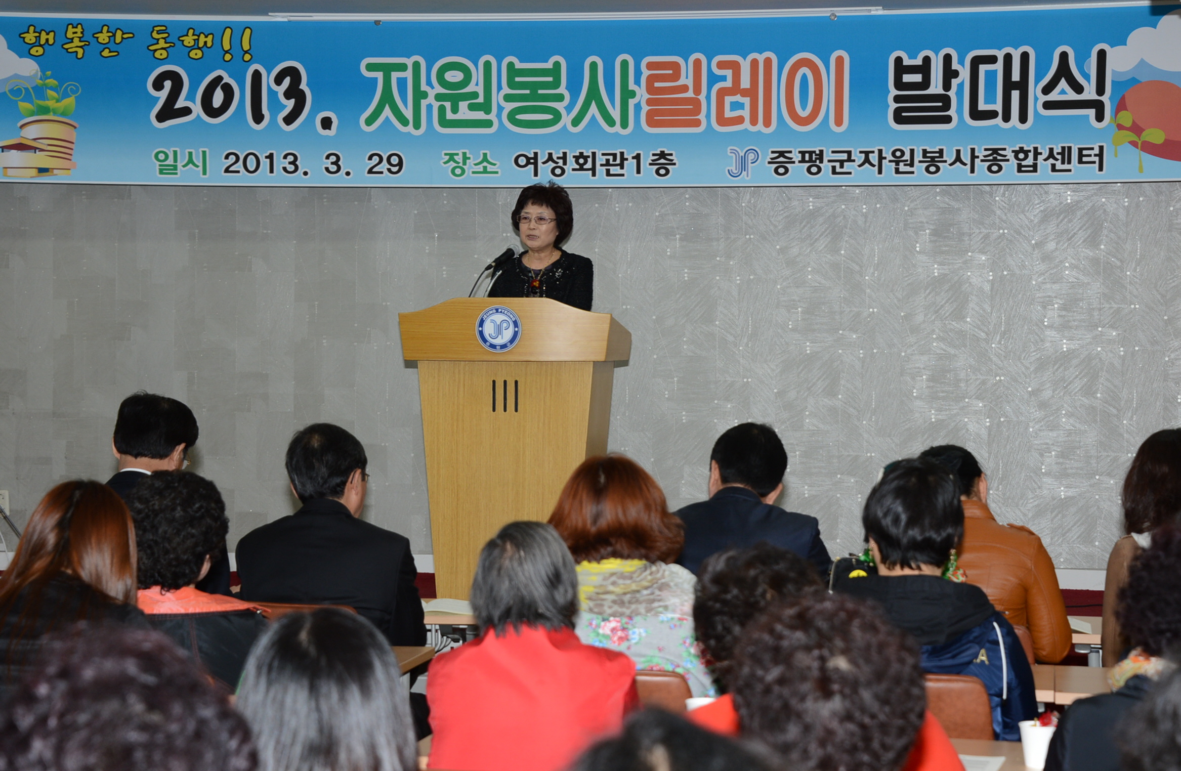 증평군자원봉사종합센터(김남순 센터장)는 29일 오후2시에 증평읍 장동리 자원봉사센터에서 홍성열 증평군수, 지영섭의원, 등 지역인사와 봉사단체 회원 등 80여명이 참석한 가운데 ‘2013 자원봉사 릴레이’ 발대식을 가졌다. [보도자료실 참조]
