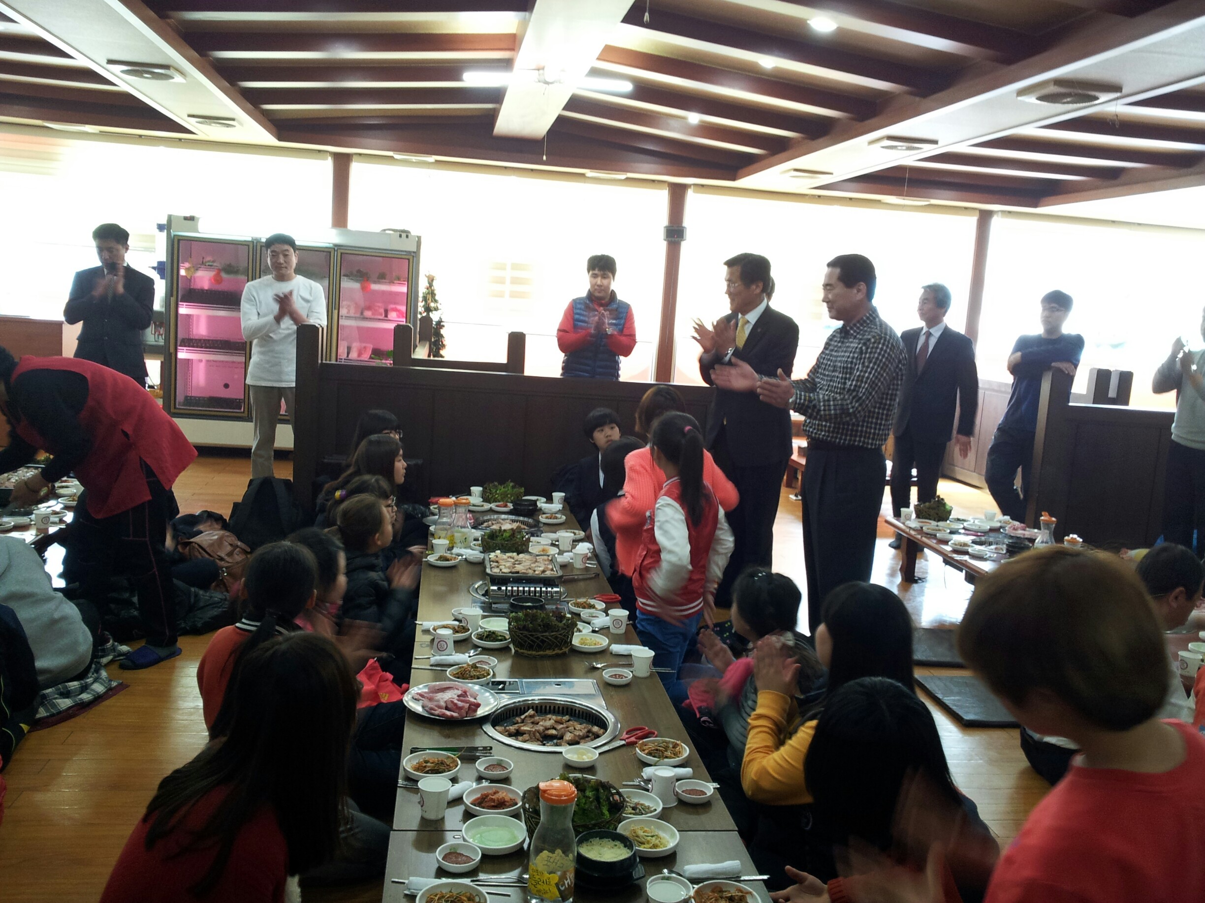 증평군 체육회 연광영 전무이사(55세)는 지난 1일 충북소년체전에 참가하는 증평․삼보초, 증평여중 핸드볼 선수단에게 오찬하면서 격려의 시간을 가졌다. [증평보도자료실 참조]