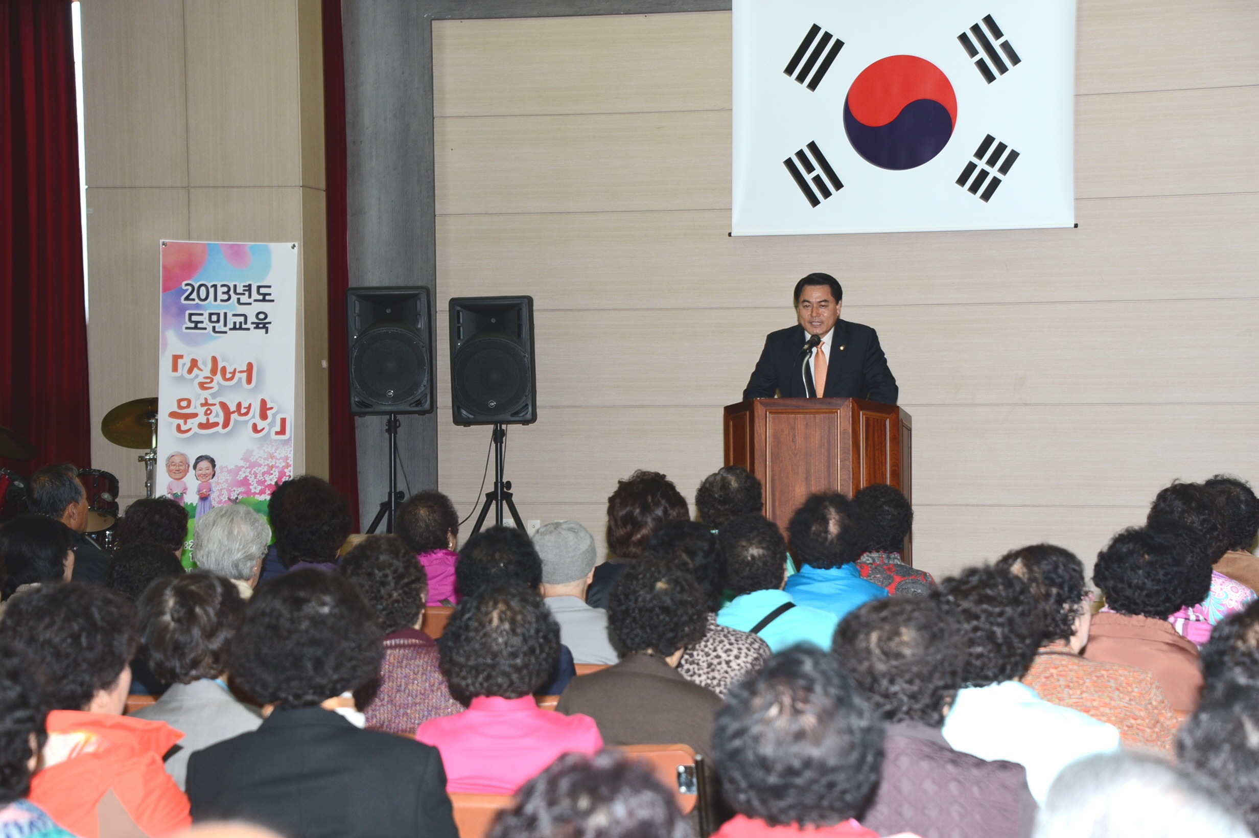 증평군노인복지관에서는 18일 어르신 80여명을 대상으로 충청북도 자치연수원 주관으로 열린 찾아가는 도민교육 ‘실버문화반’이 개최됐다. [보도자료실 참조]