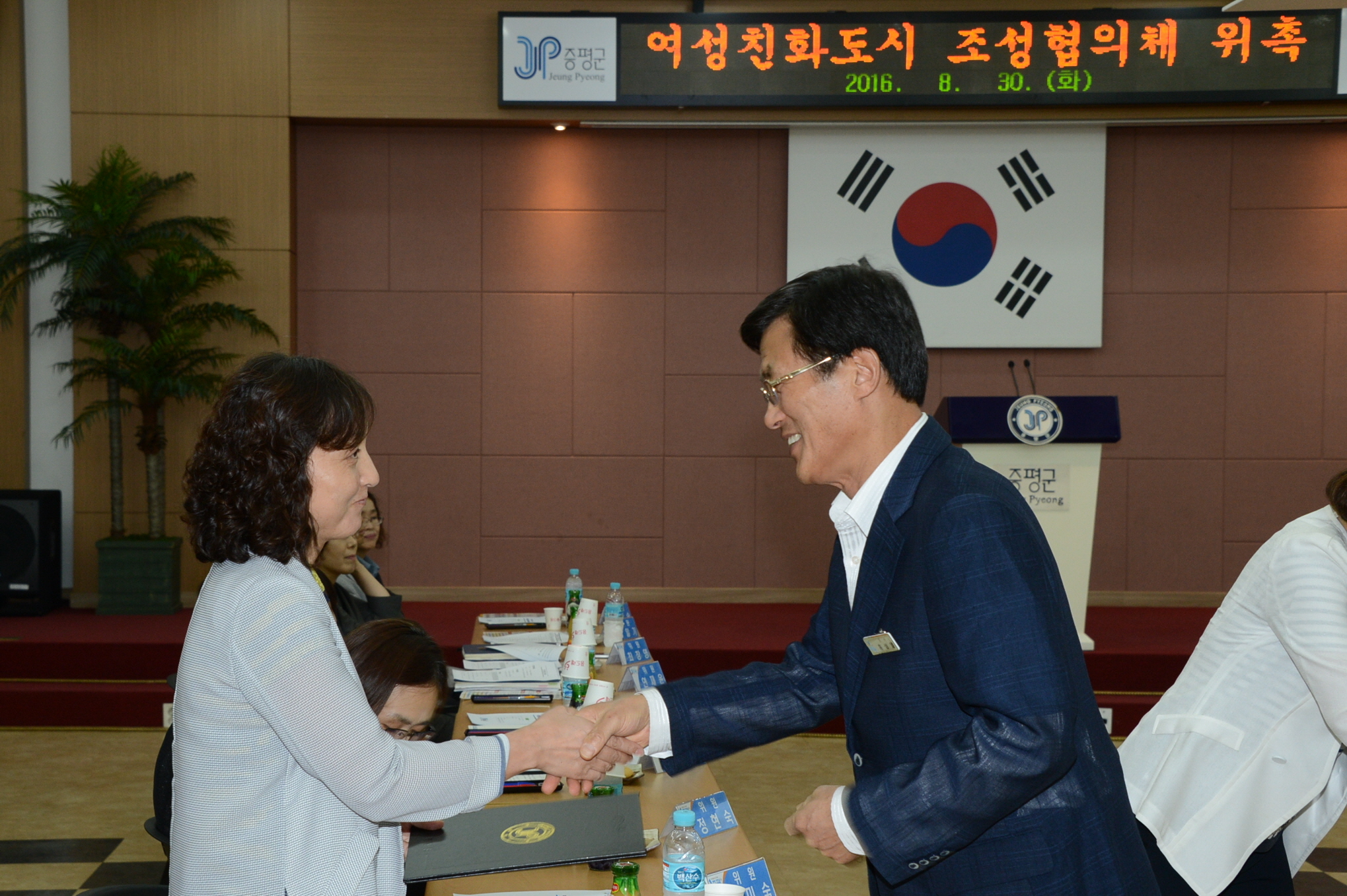 증평군은 30일 오후2시 군청 2층 대회의실에서 홍성열 군수를 비롯해 위촉위원 등 30여명이 참석한 가운데 여성친화도시조성협의체 위원에 대한 위촉식 및 여성친화도시의 이해에 대한 특강을 실시했다 .(보도자료실 참조)
