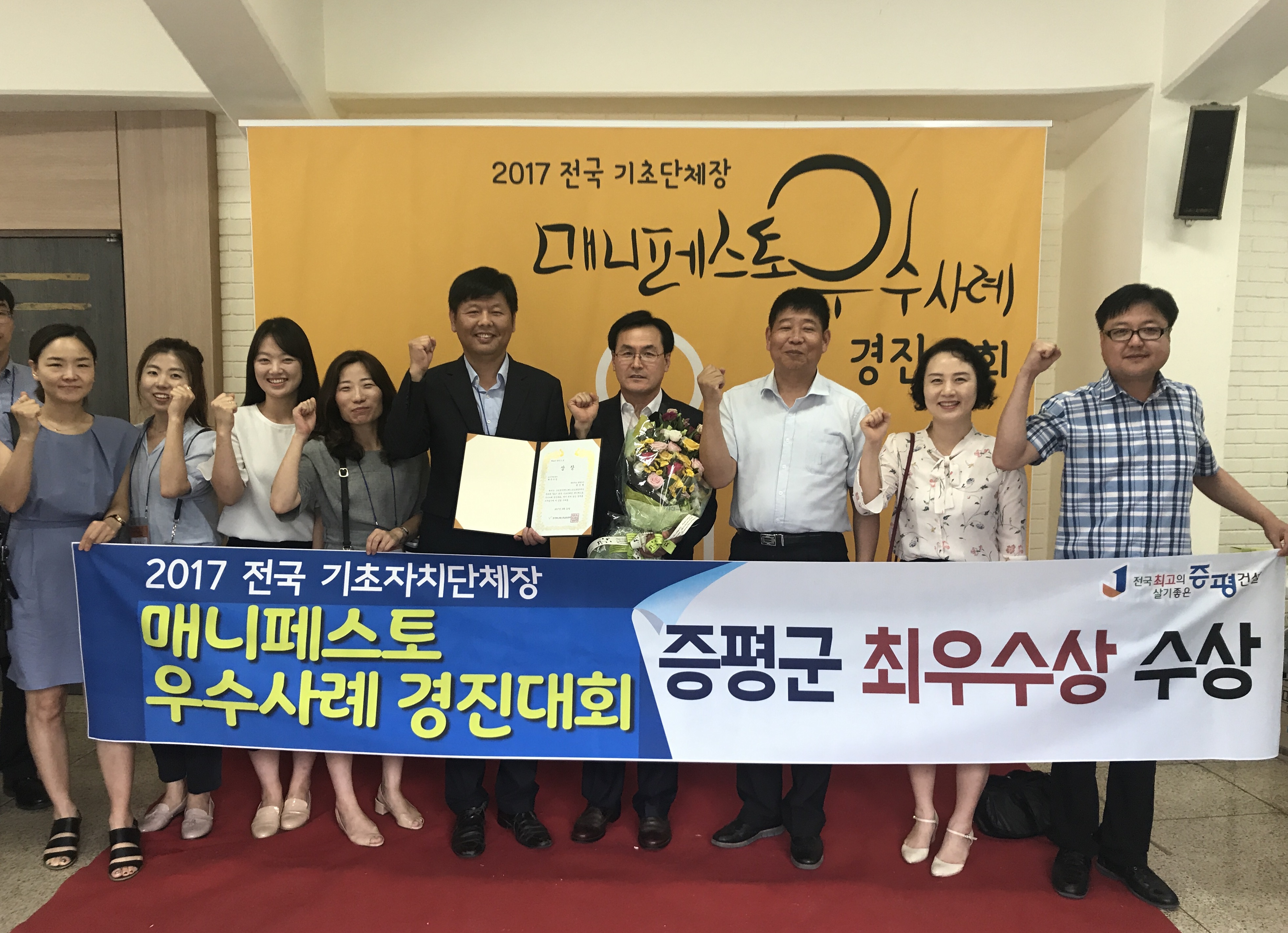 증평군(군수 홍성열)이 기초자치단체장의 공약이행우수사례를 평가하는‘2017 전국 기초단체장 매니페스토 우수사례 경진대회’에서 도시재생분야 최우수상을 수상했다.