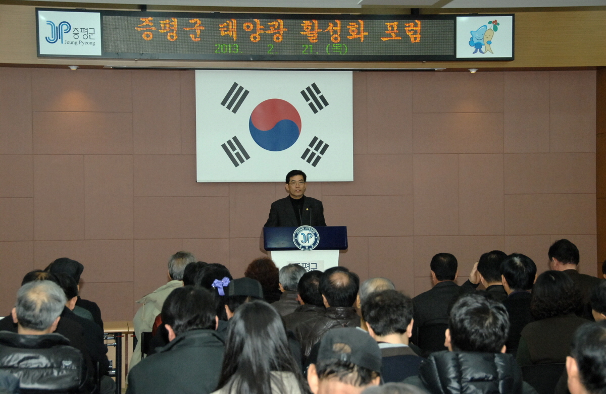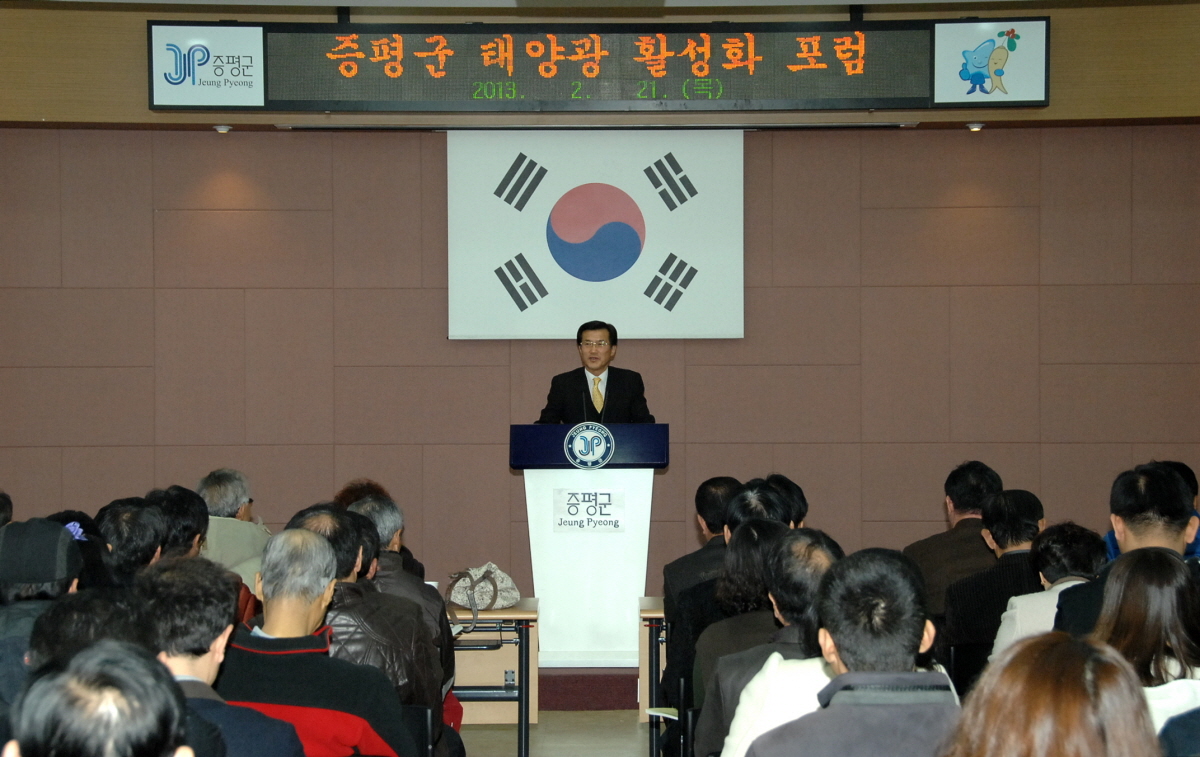 증평군은 21일 오후2시 대회의실에서 솔라시티 기반조성을 위해 2단계 지역균형발전사업의 일환인 지역혁신역량 강화사업으로 ‘태양광 포럼’을 열었다. [보도자료실 참조]