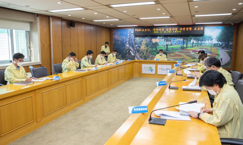 증평군은 우리마을 뉴딜사업 조기준공을 위해 15일 군청 소회의실에서 추진현황 보고회를 개최했다.