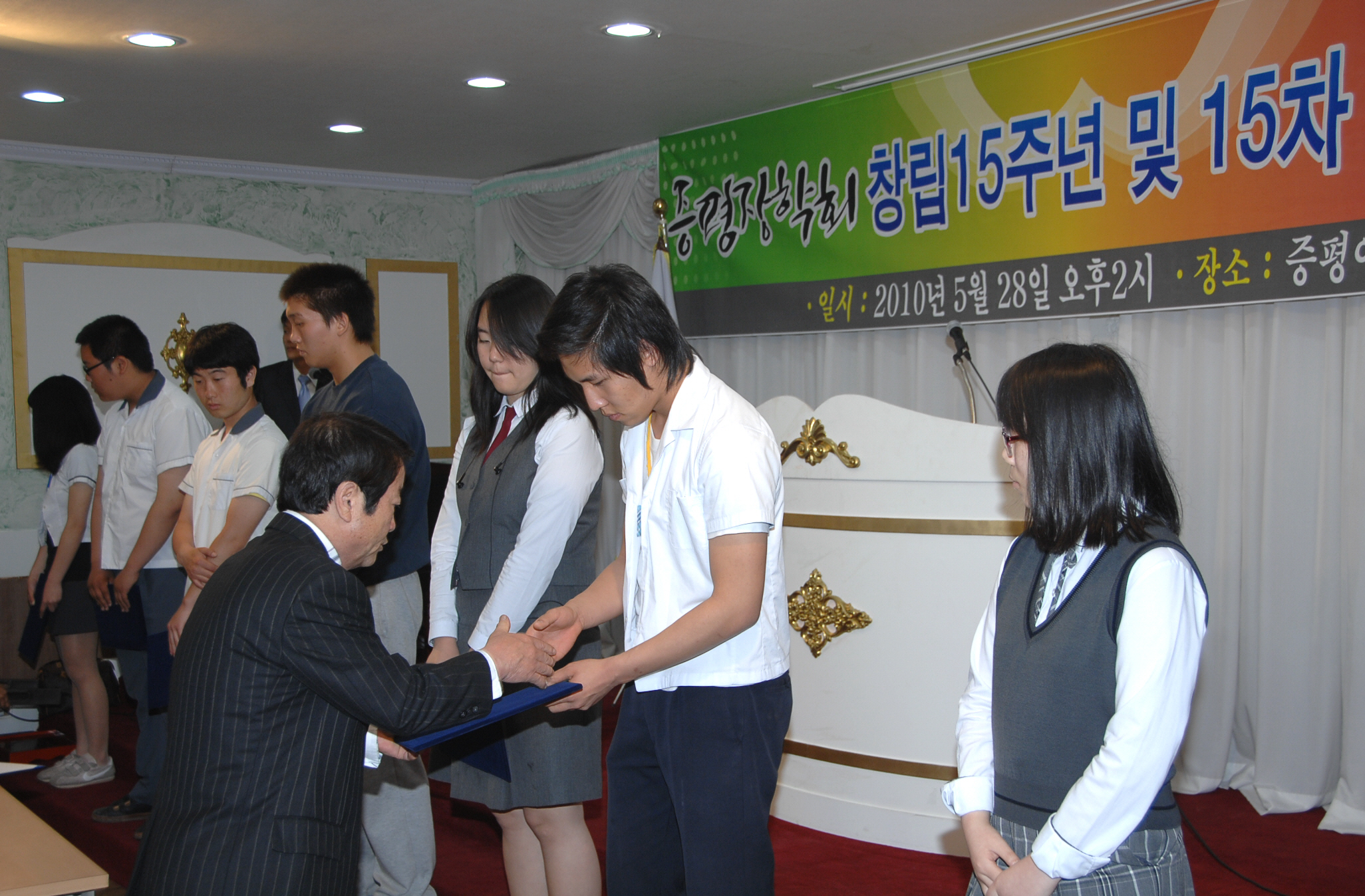 증평장학회(회장 이춘희)는 28일 오후 2시 증평읍 장동 여성회관에서 장학회 창립 15주년 기념식을 갖고, 지역 내 가정형편이 어려운 초ㆍ중ㆍ고 및 대학생 25명에게 총 560만원의 장학금을 전달했다.[보도자료실 참조]