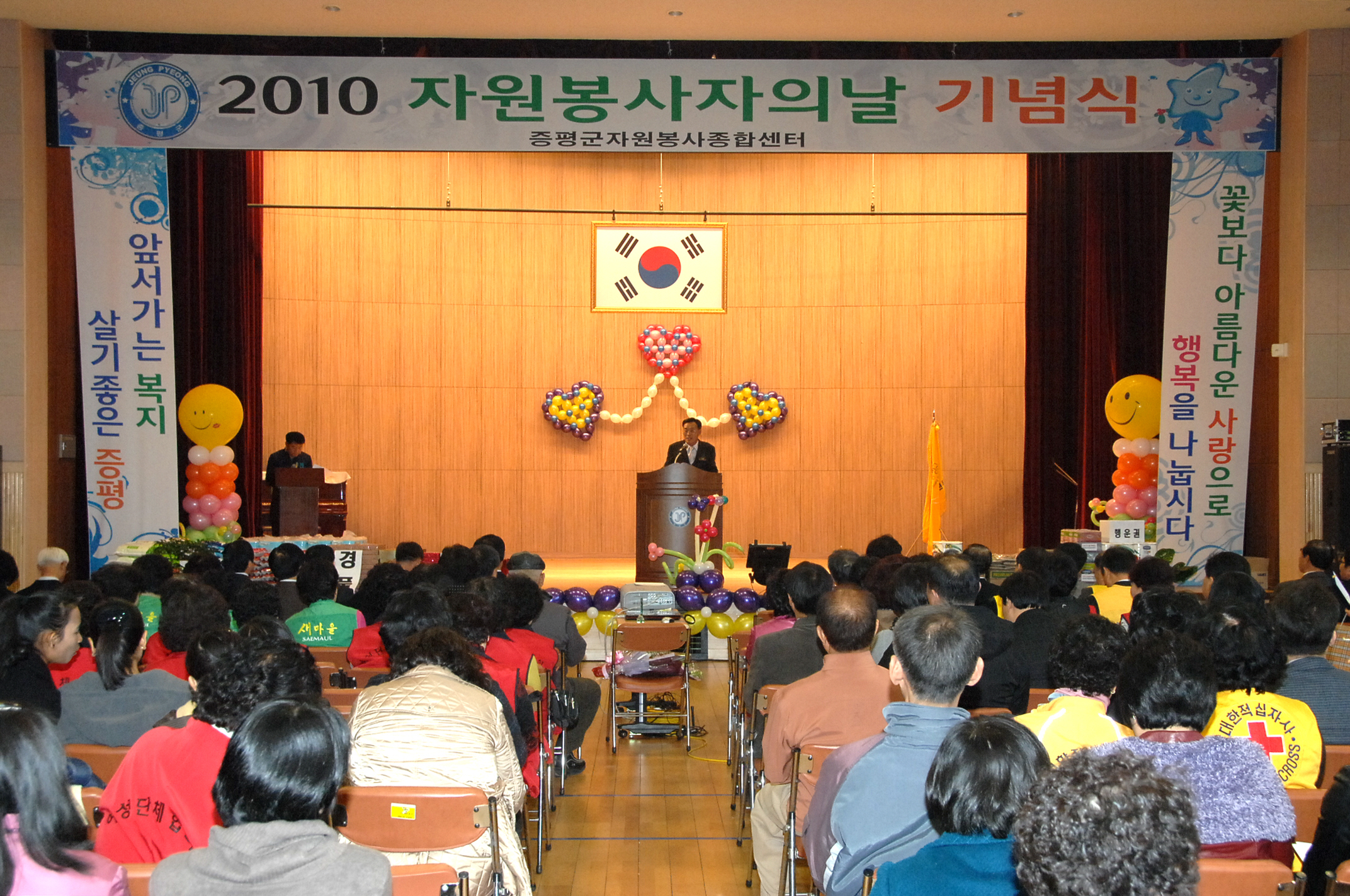 증평군은 1일 오후 2시 군 청소년수련관에서 한 해 동안 증평지역에서 봉사활동을 펼쳐온 자원봉사자들의 노고를 격려하고 자원봉사자의 날(12월 5일)을 축하하기 위한 ‘2010년 자원봉사자의 날 기념행사’를 개최했다. [보도자료실 참조]
