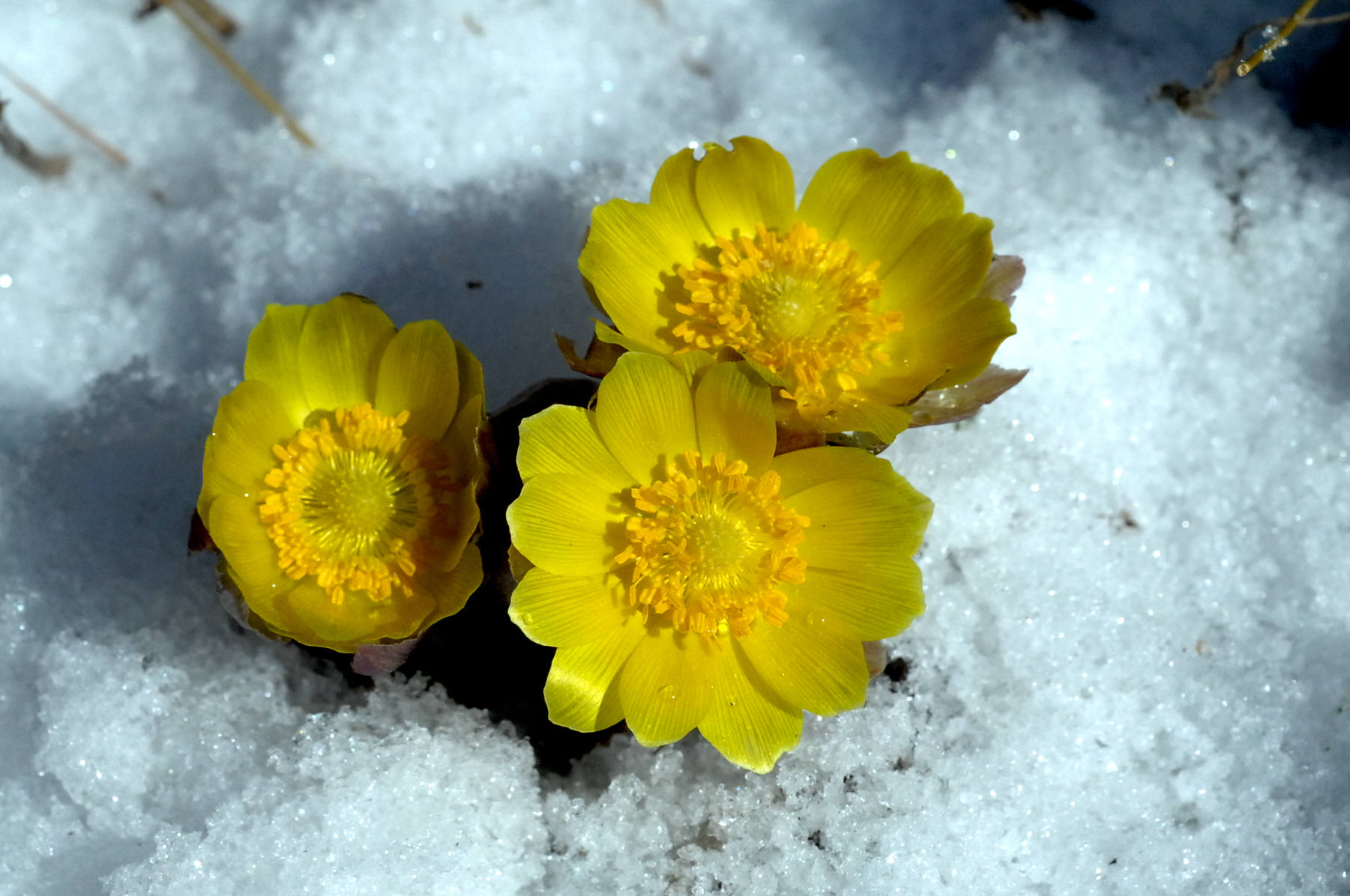 눈 속에서 새싹과 줄기가 움이 터 올라와서 줄기 끝에 선명한 노란 색 꽃을 피우는데 꽃잎이 연꽃처럼 아침에 열렸다가 저녁에 닫힌다.